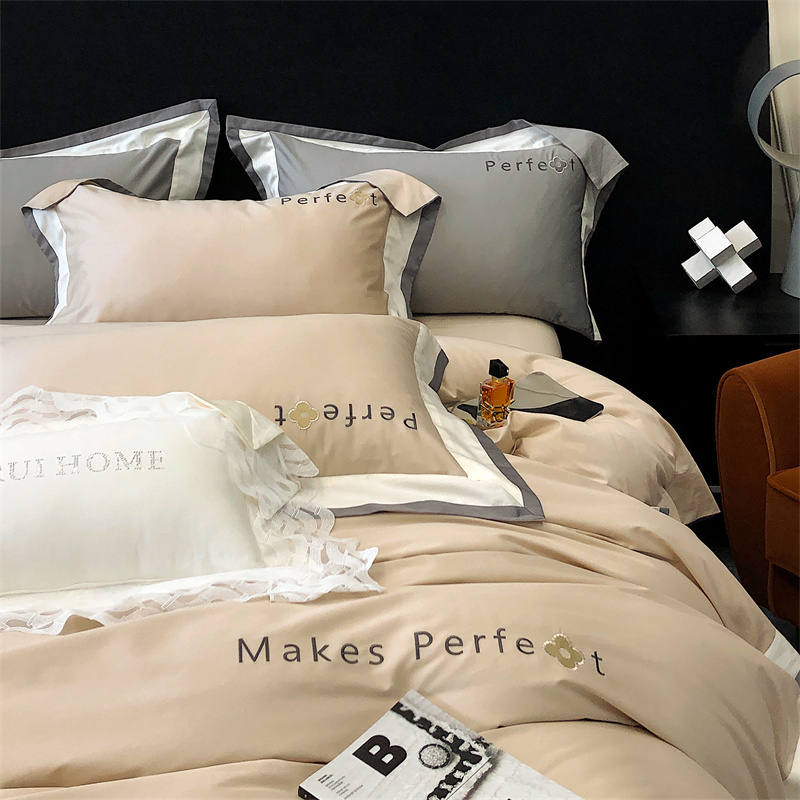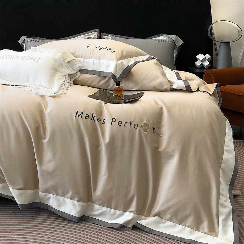商品名称:馨蕊家居 2025秋冬新品100s高奢典藏简约全棉四件套系列-莫斯科 莫斯科-香槟