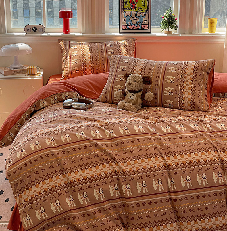 忆生活 2025新款秋冬复古风全棉加厚磨毛四件套 骑士