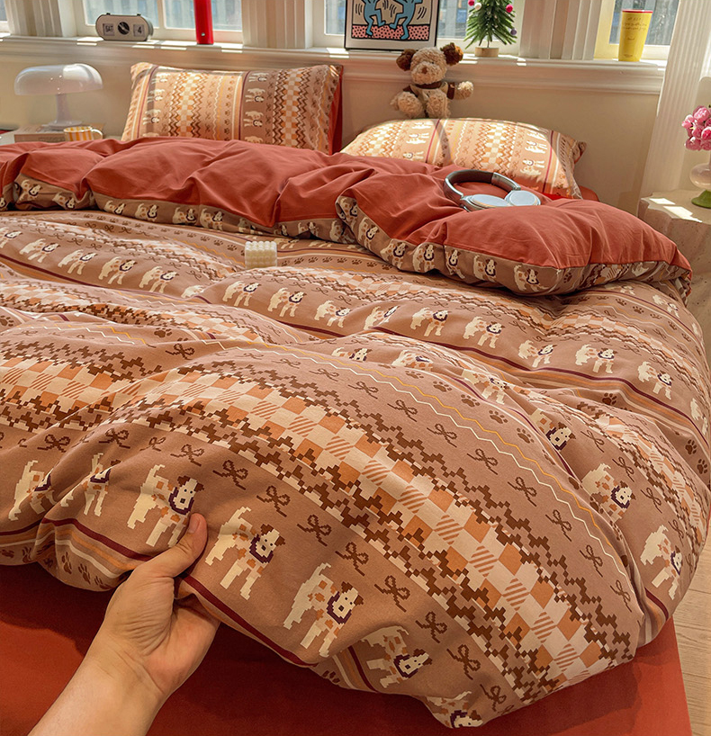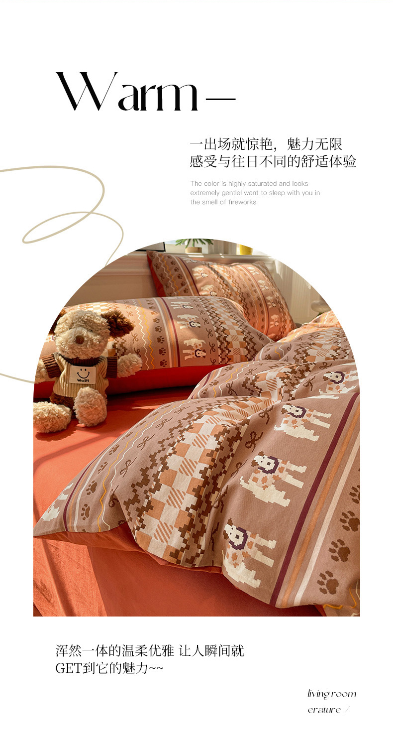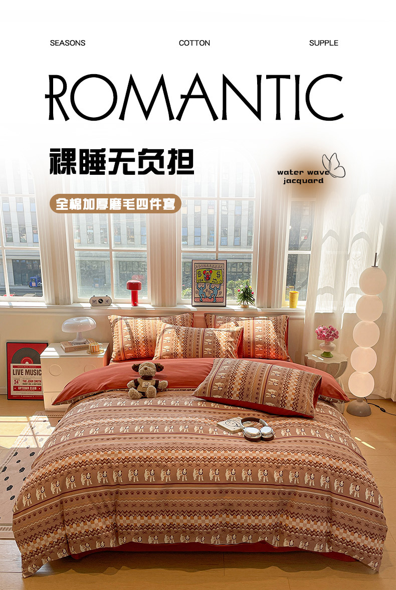 商品名称:忆生活 2025新款秋冬复古风全棉加厚磨毛四件套 骑士