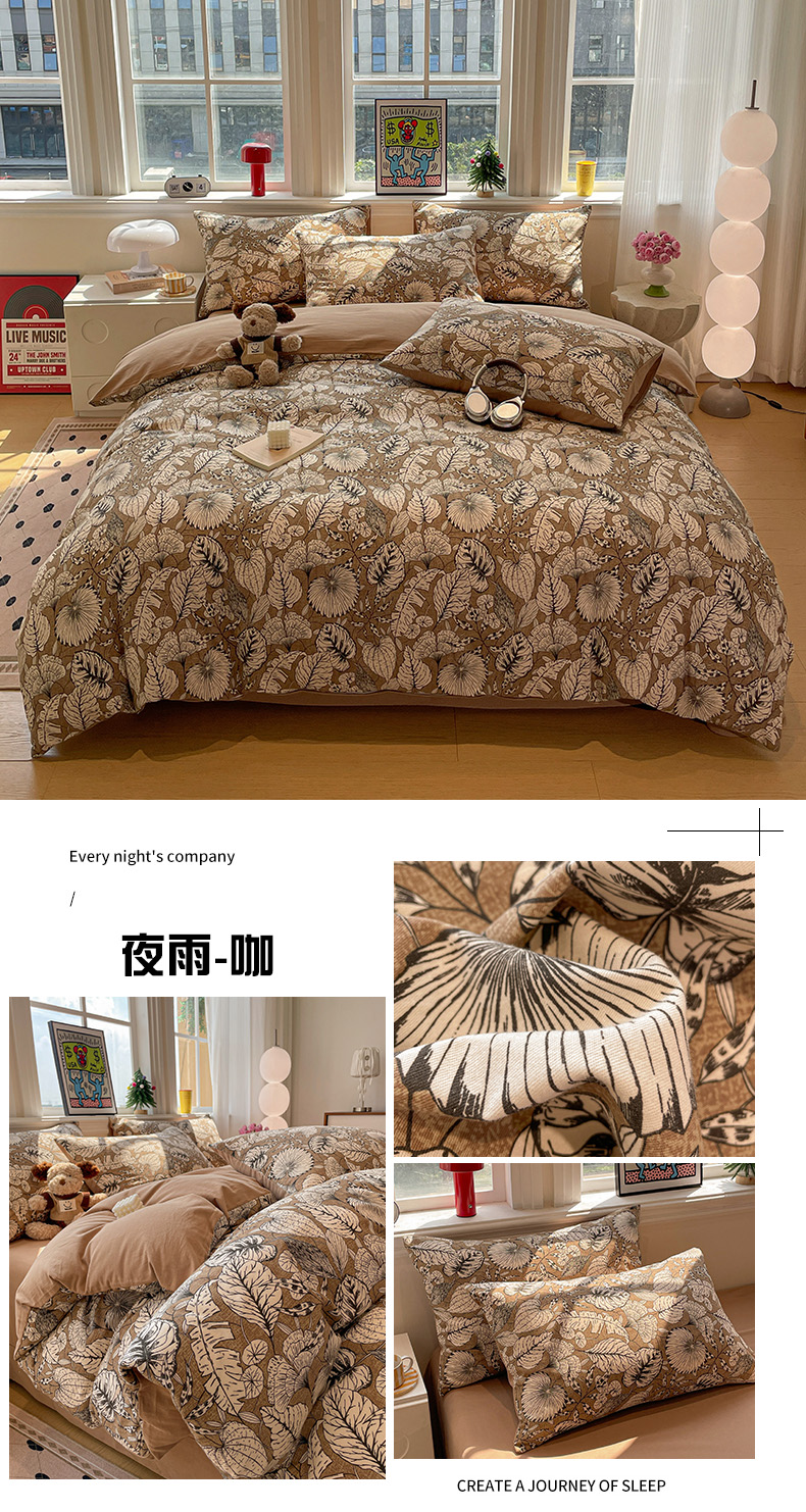 (总)忆生活 2025新款秋冬复古风全棉加厚磨毛四件套,简秋-咖,花汐,花颜-红,璃月-绿,漫枝-灰,漫枝-绿,骑士,芊墨,童年,玩伴,叶语,夜雨-咖