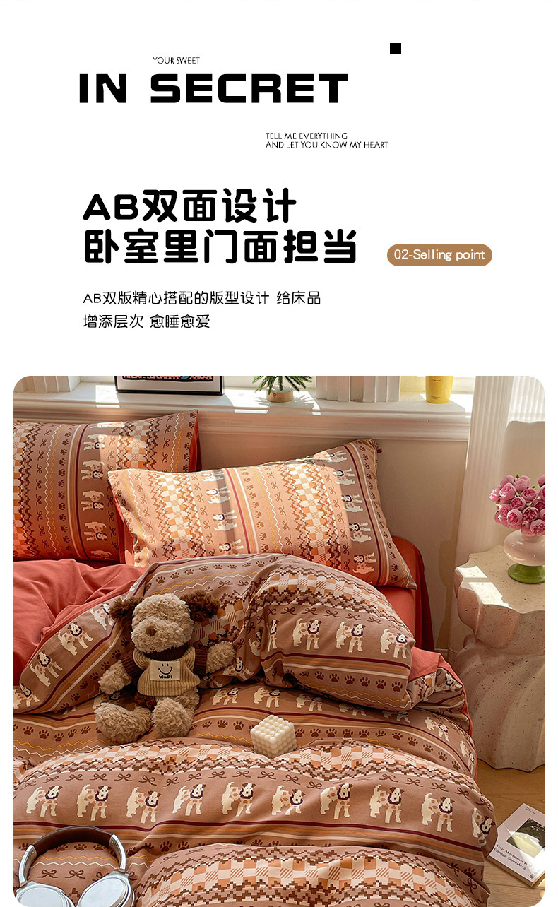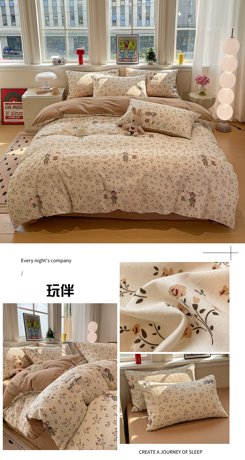 (总)忆生活家纺 2025秋冬新品软糯缇肤绒印花贝壳边四件套,卡拉-灰,开心熊-米,南笙-咖,南笙-绿,浅夏-咖,素影-酒红,素影-紫,小樱桃-酒红,叶茂-驼