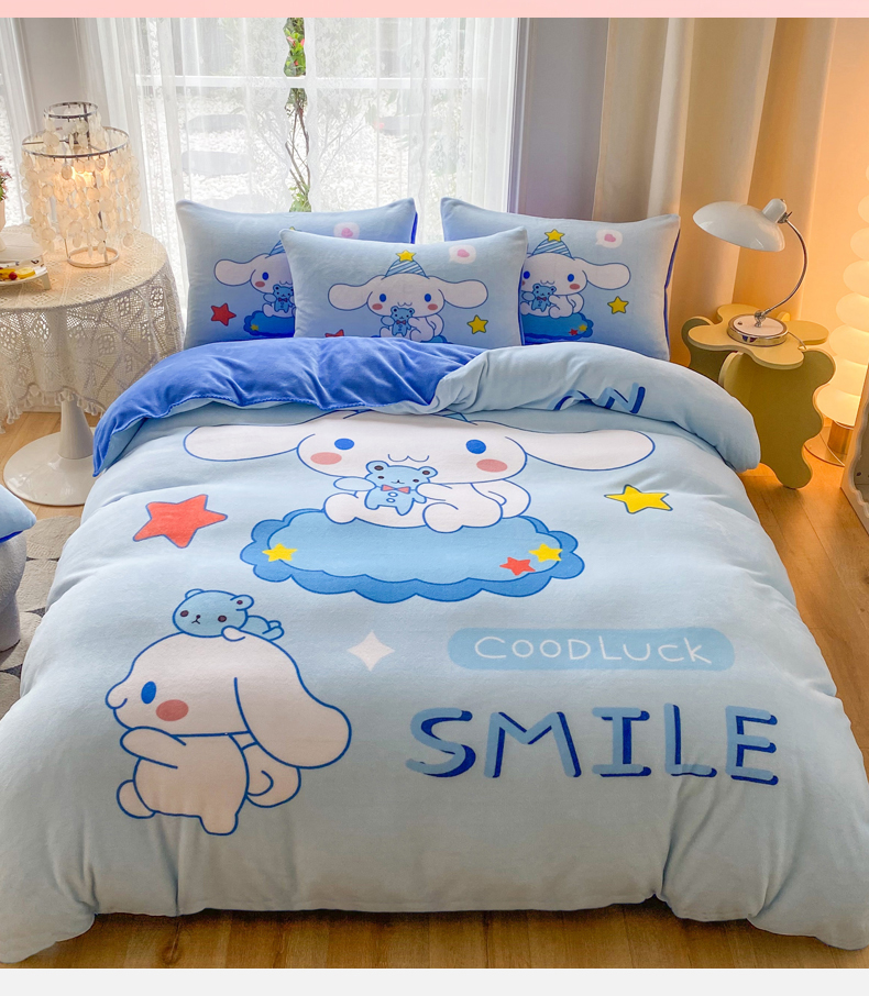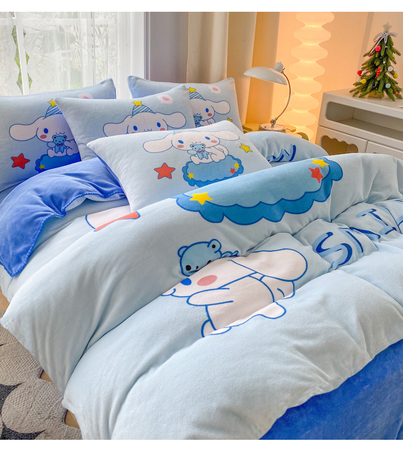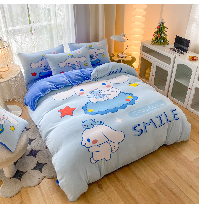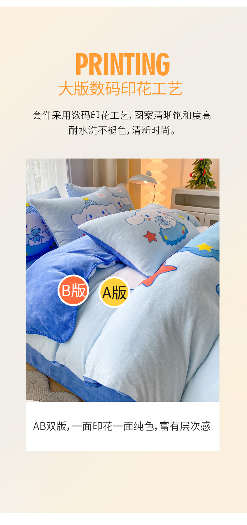 (总)一电 2025新款冬季双面牛奶珊瑚绒床上四件套法兰绒床品加绒被套床单三件套-第三批,公主库洛米,天使库洛米,甜筒库洛米,小兔子,圆点库洛米