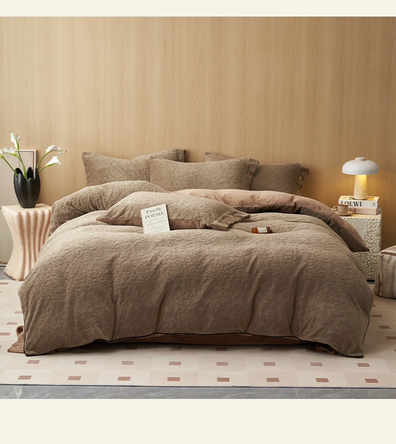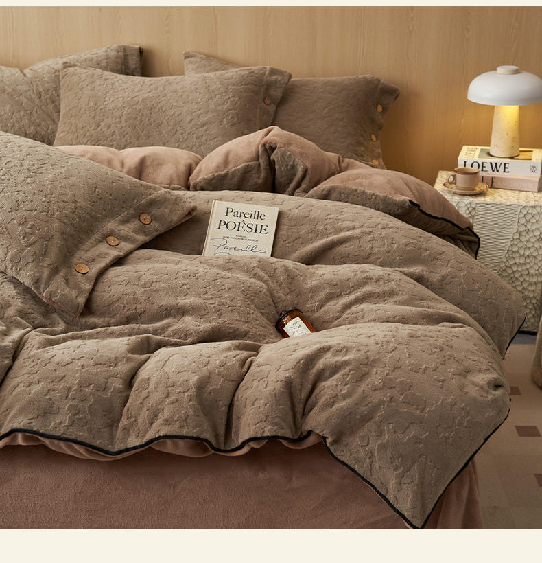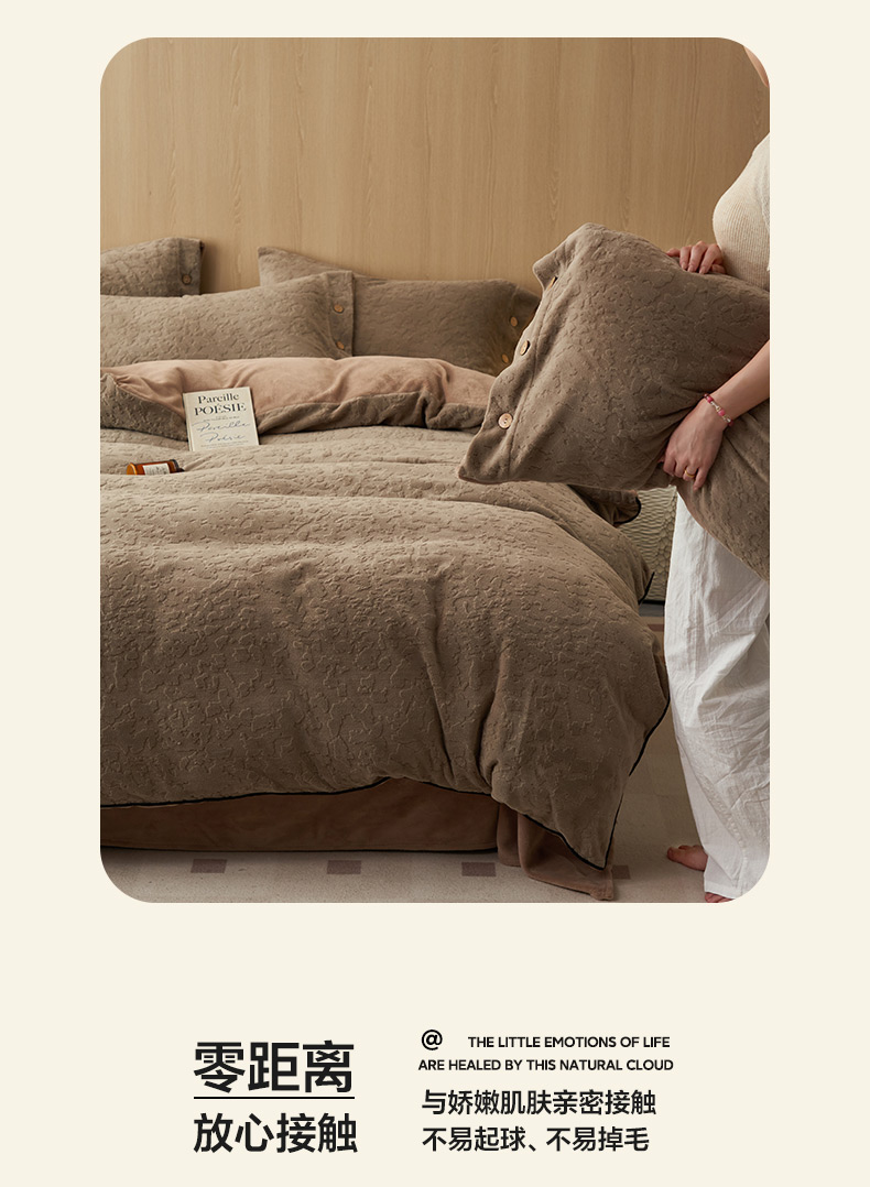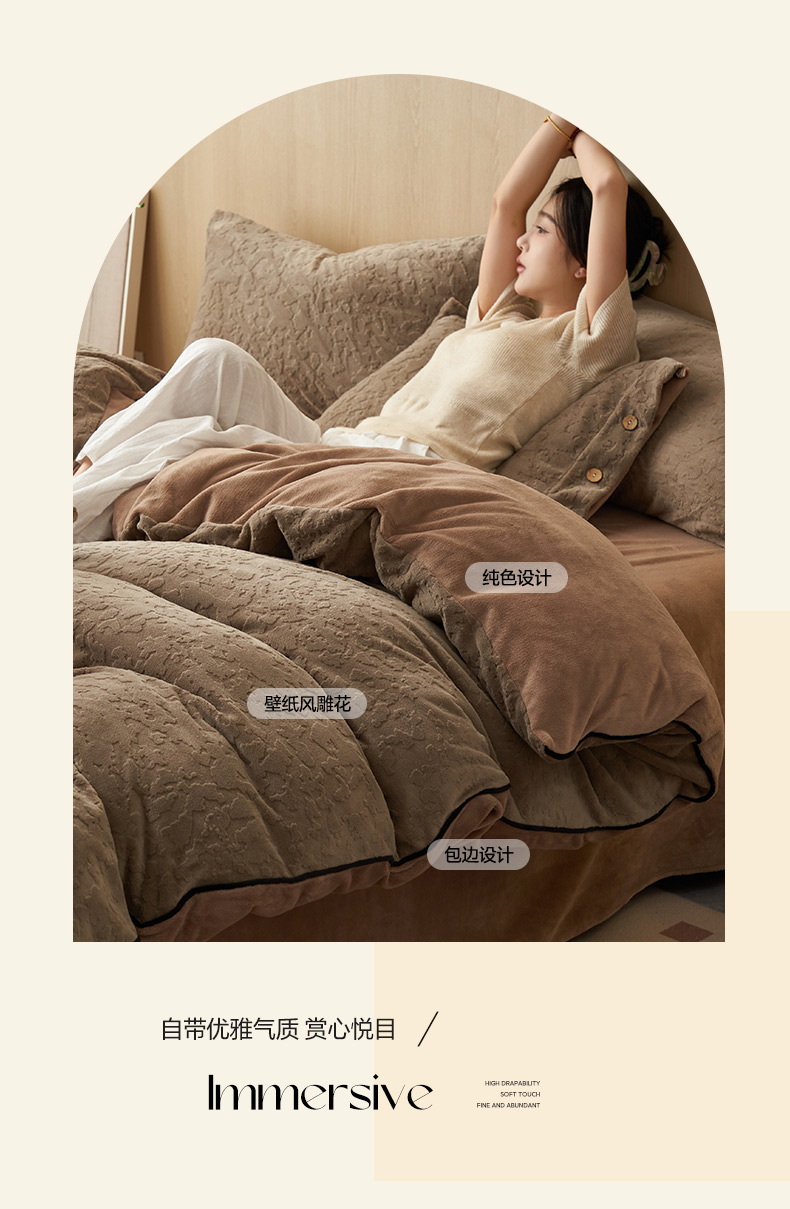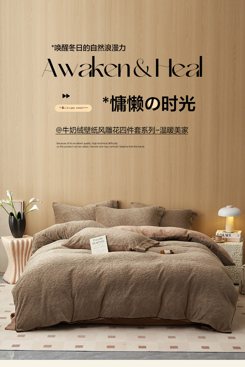当前位置: 91家纺网 > 商品网购 > 床品套件 > 四件套 > 牛奶绒四件套 > 寐绸家纺 2025秋冬新款230g牛奶绒壁纸风雕花四件套 壁纸风-棕色