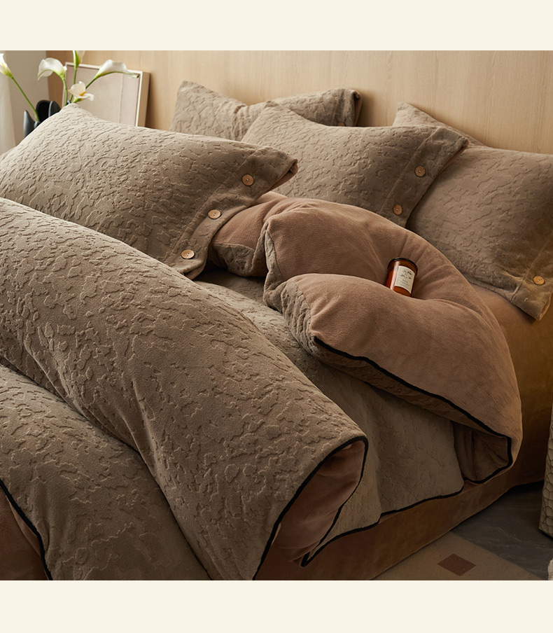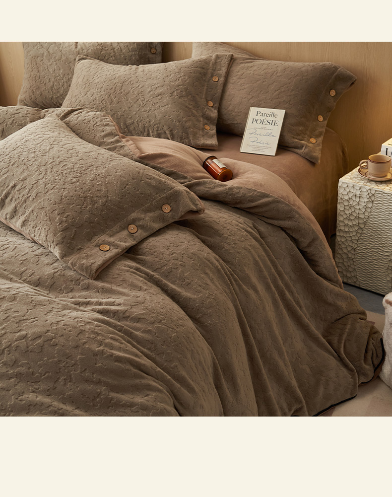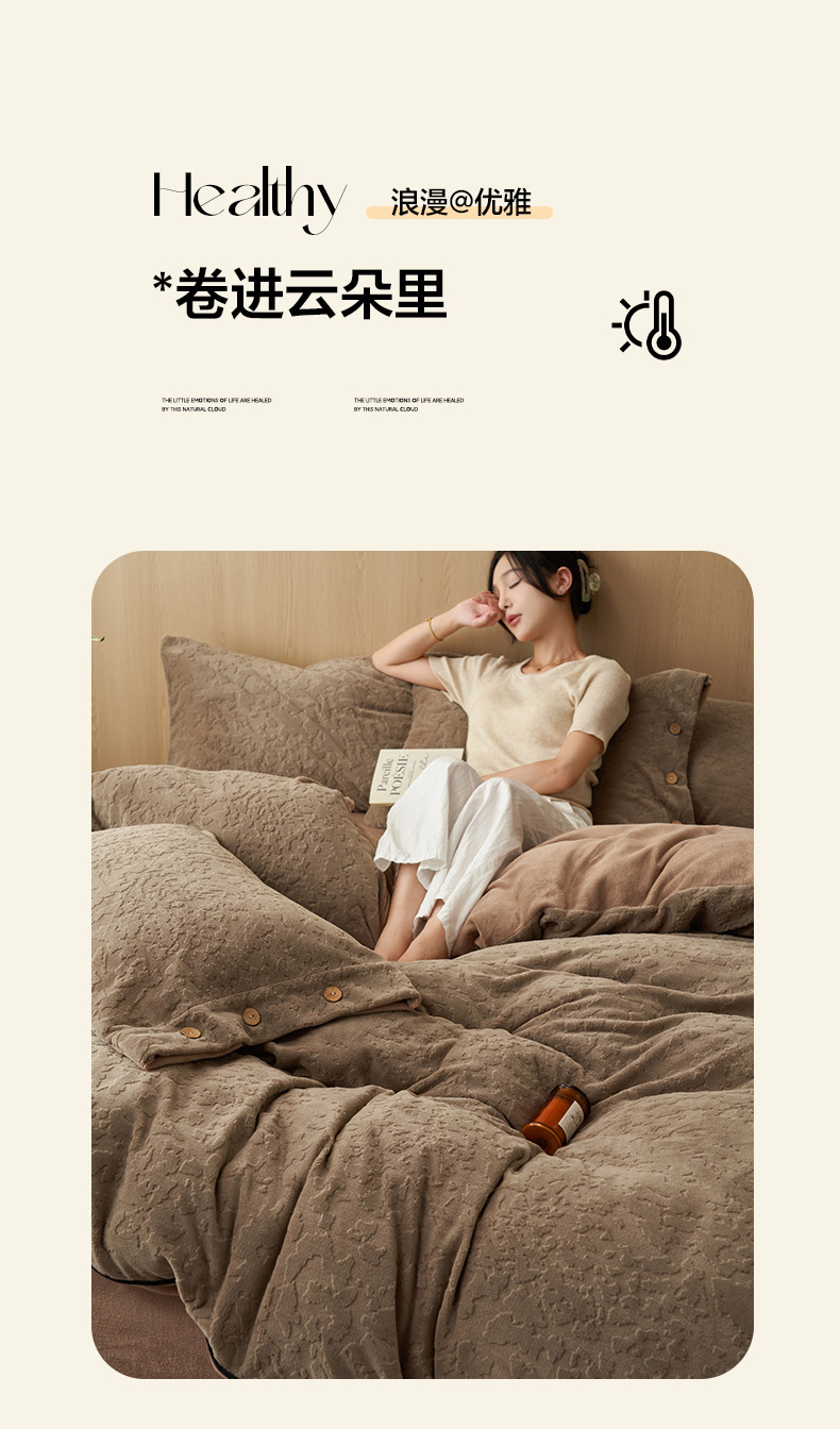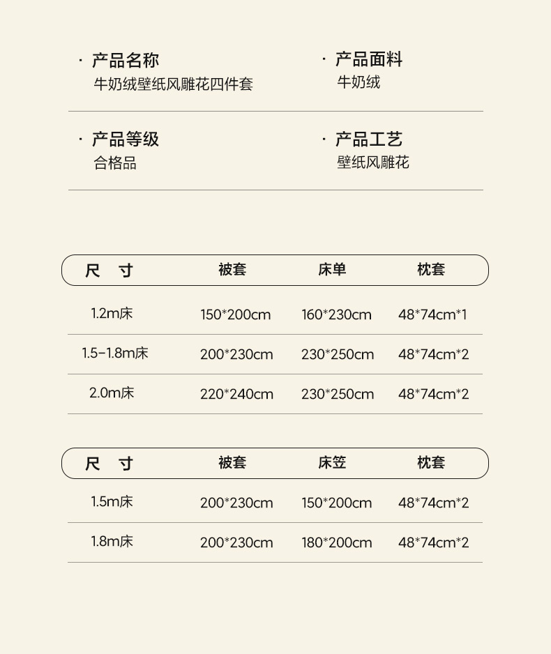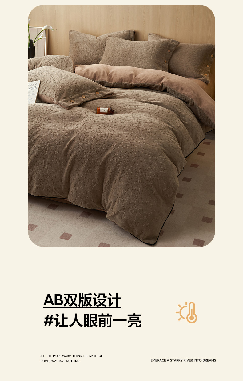 当前位置: 91家纺网 > 商品网购 > 床品套件 > 四件套 > 牛奶绒四件套 > 寐绸家纺 2025秋冬新款230g牛奶绒壁纸风雕花四件套 壁纸风-棕色