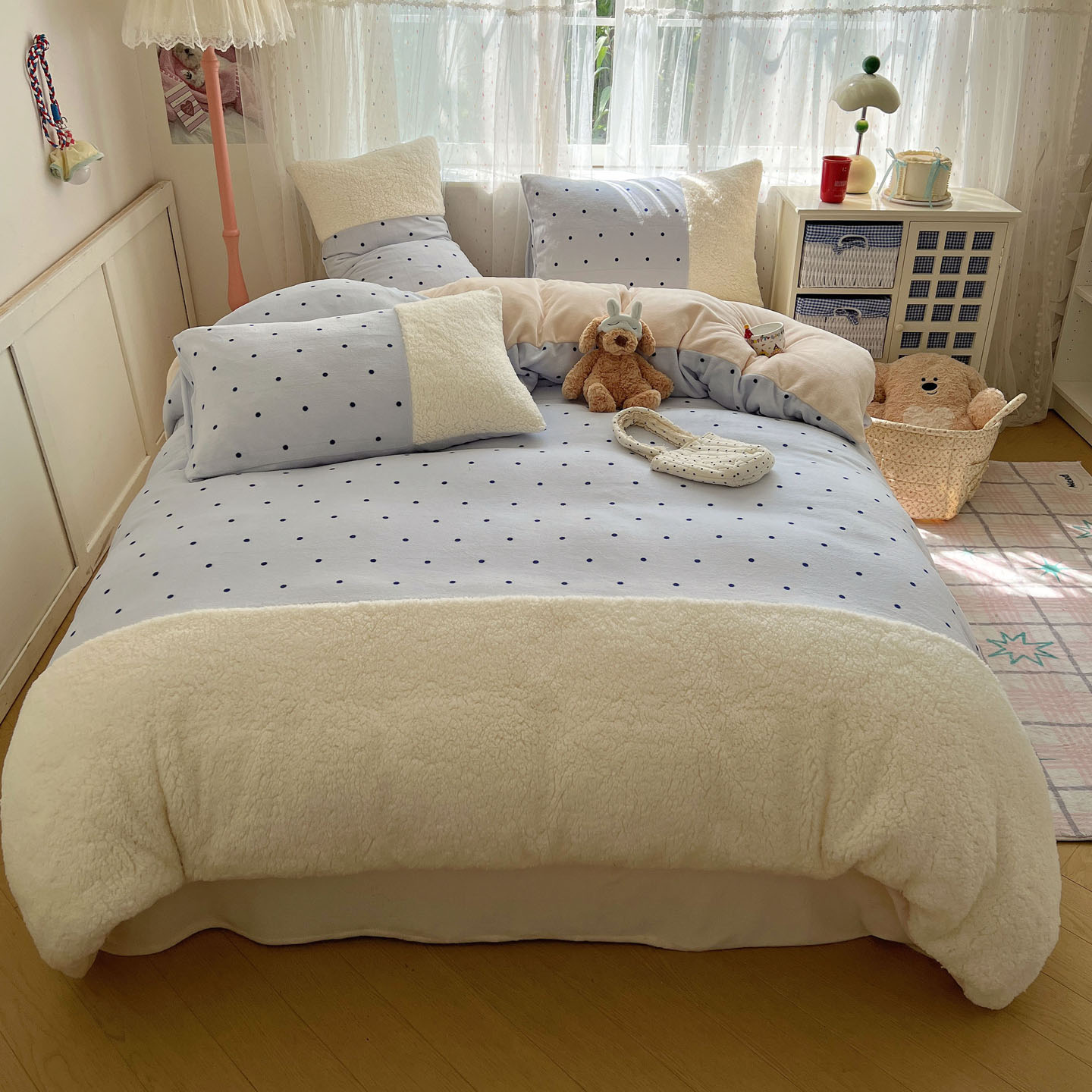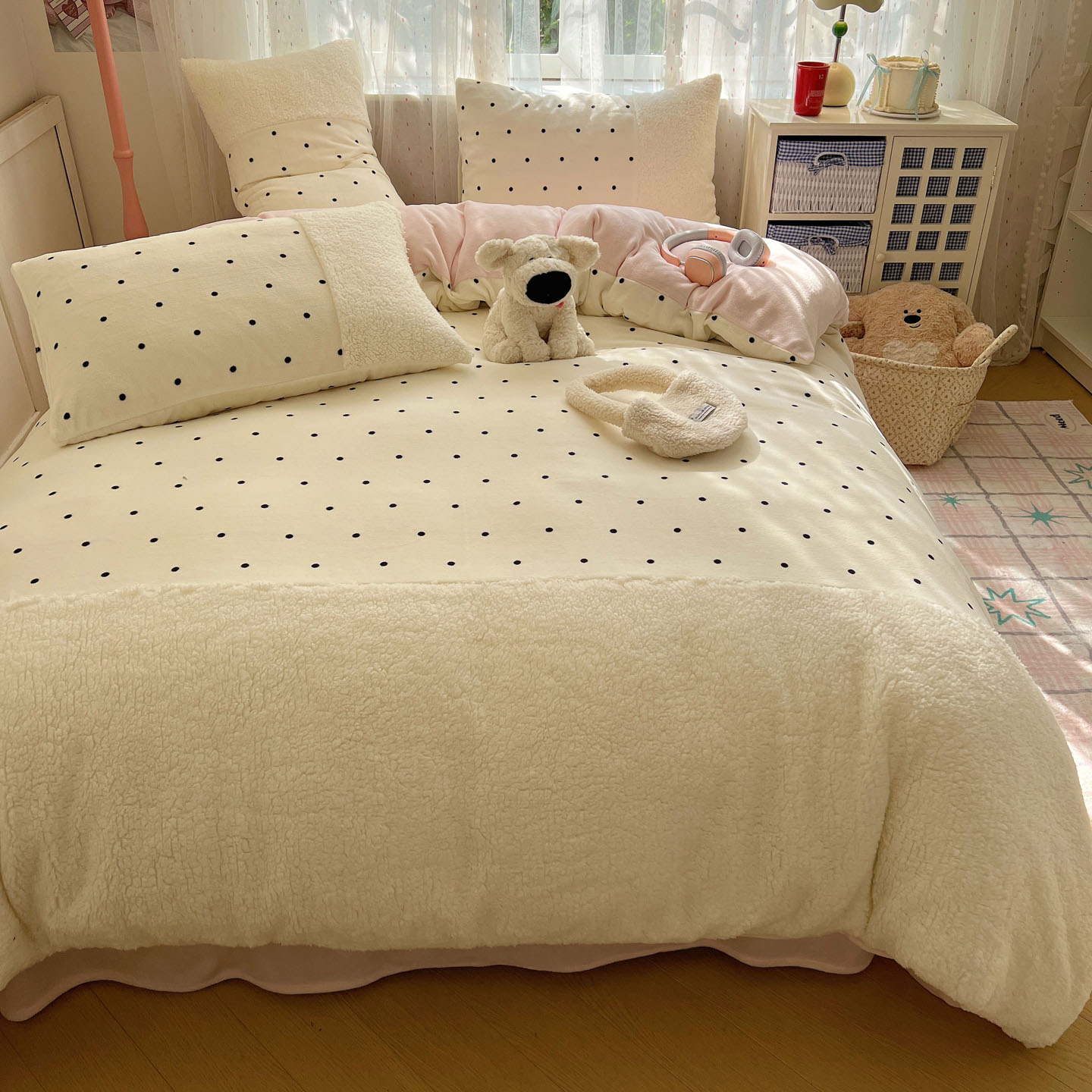 当前位置: 91家纺网 > 商品网购 > 床品套件 > 四件套 > 牛奶绒四件套 > 顾里家纺 2025新款波点羊羔拼接牛奶绒四件套小波点 粉波点