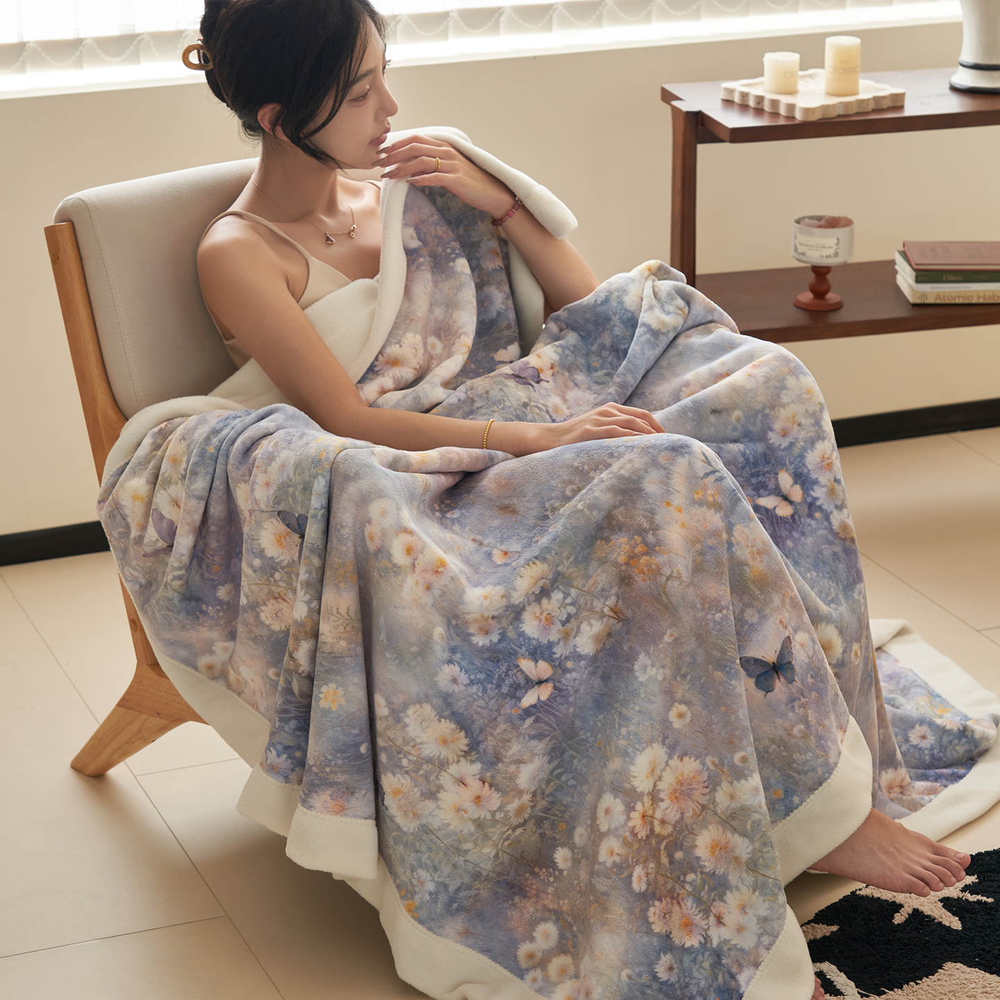 商品名称:寐绸家纺 2025新款牛奶绒数码印花毛毯 数码毛毯-古蝶