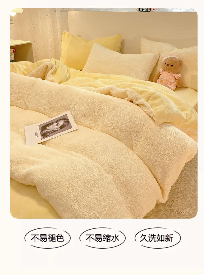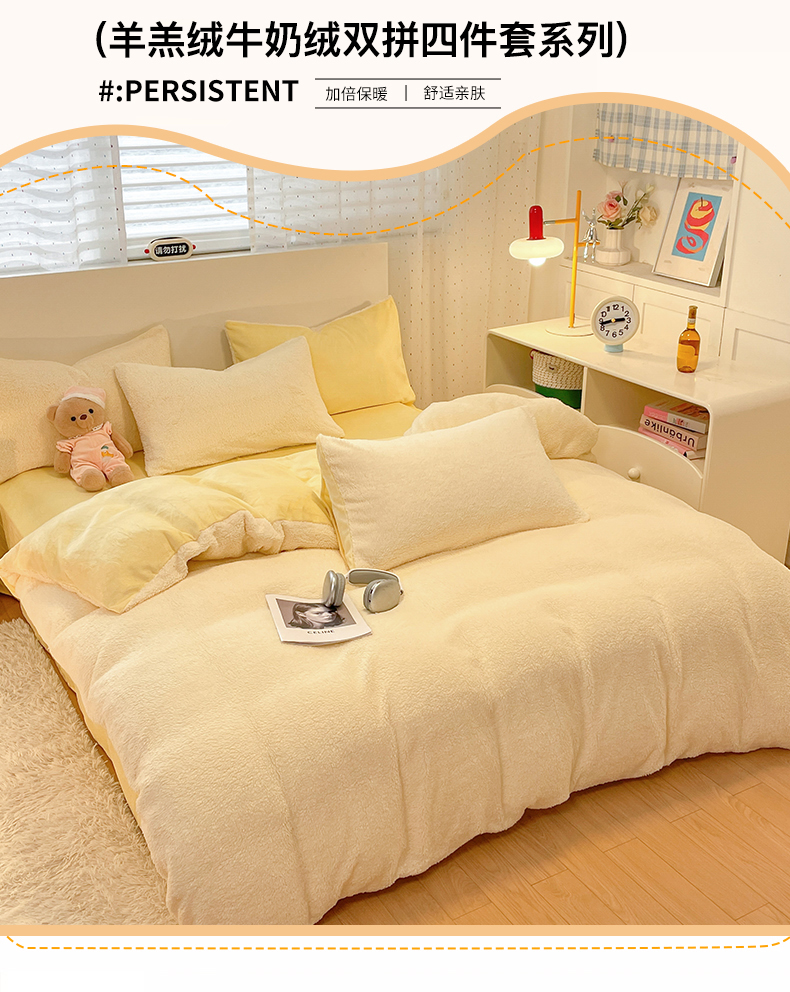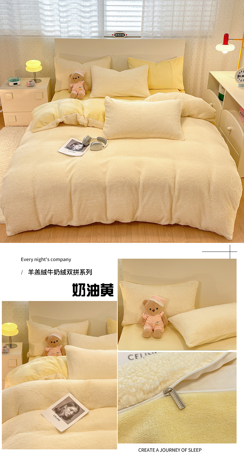 当前位置: 91家纺网 > 商品网购 > 床品套件 > 四件套 > 牛奶绒四件套 > 逸尚阁 2025新款羊羔绒牛奶绒双拼四件套 奶油黄
