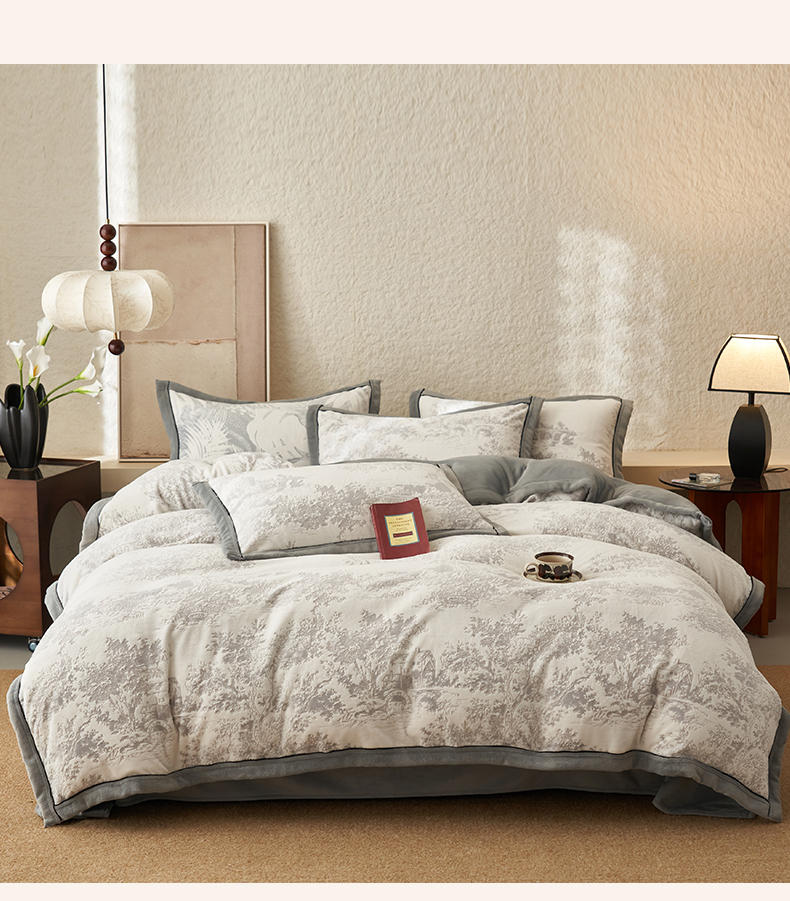 • 91家纺网 家纺一手货源 找家纺 寐绸家纺 2025新款牛奶绒染色雕花单被套 雕花被套-曲线肌理