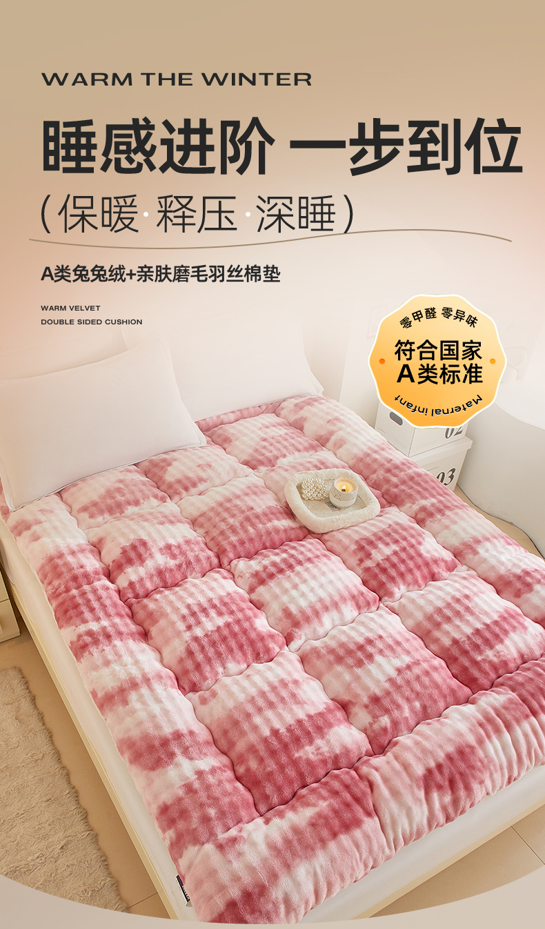 柒尚 2025新款A类兔兔绒亲肤磨毛羽丝棉垫 梦幻-胭脂红