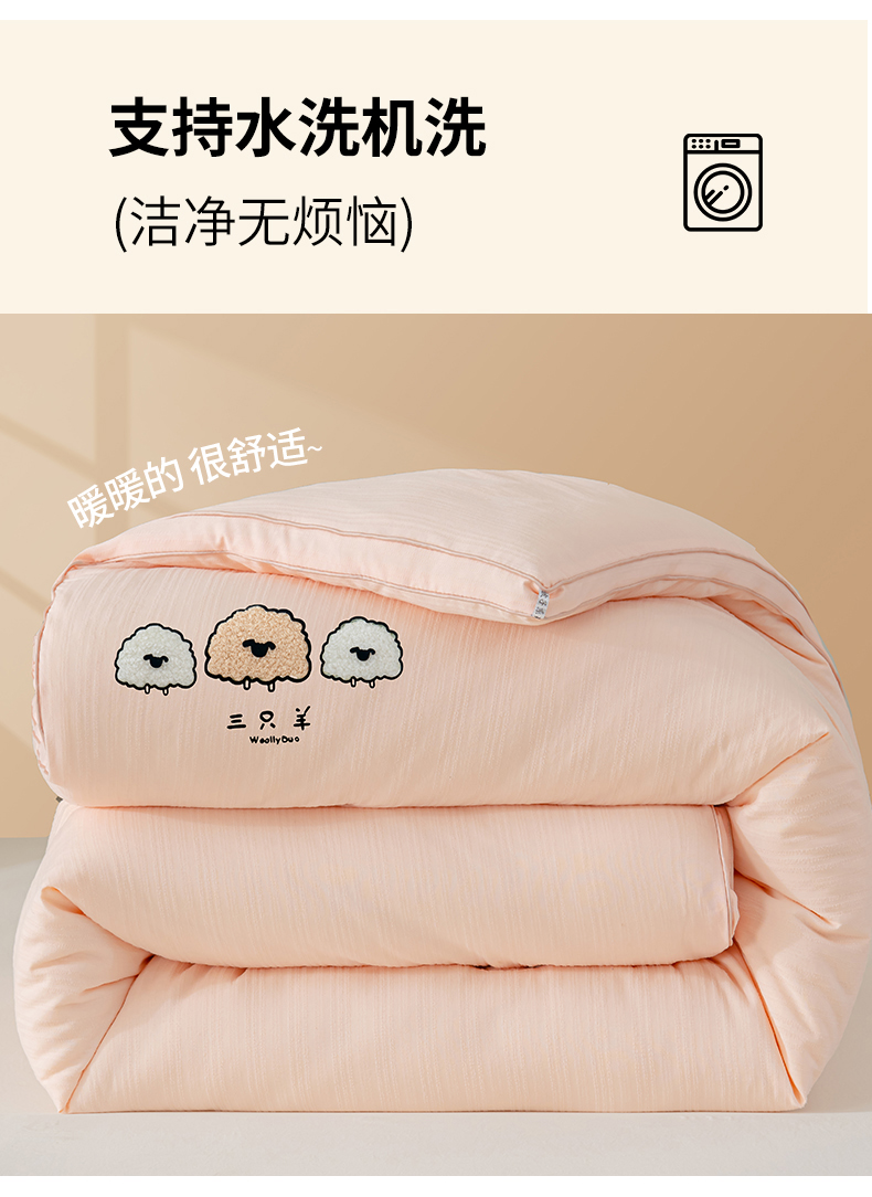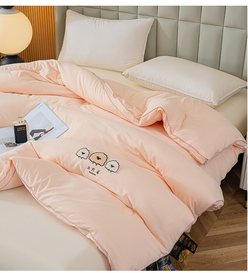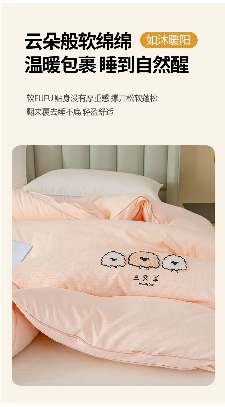 • 91家纺网 家纺一手货源 找家纺 蓝冰家纺 2025新款羊提花被被子被芯 三只羊-浅玉色