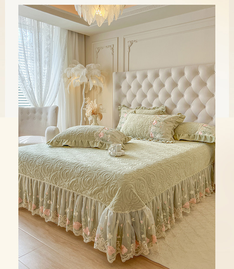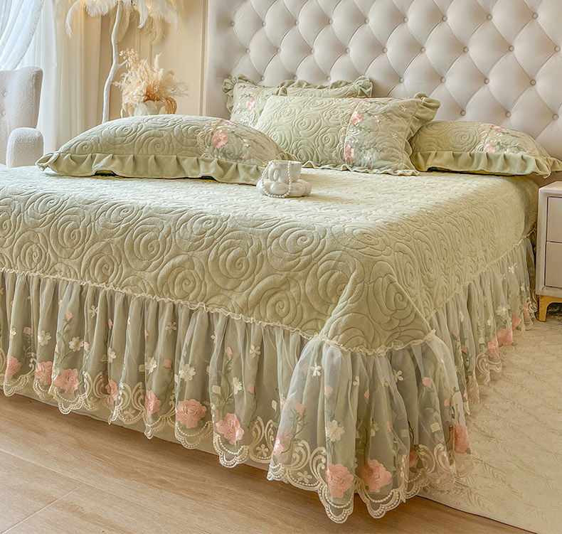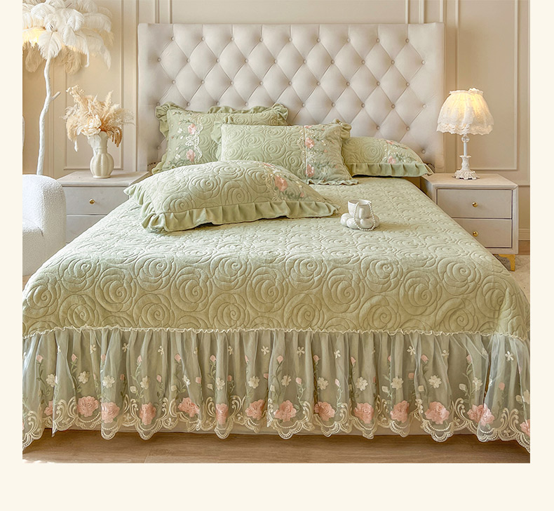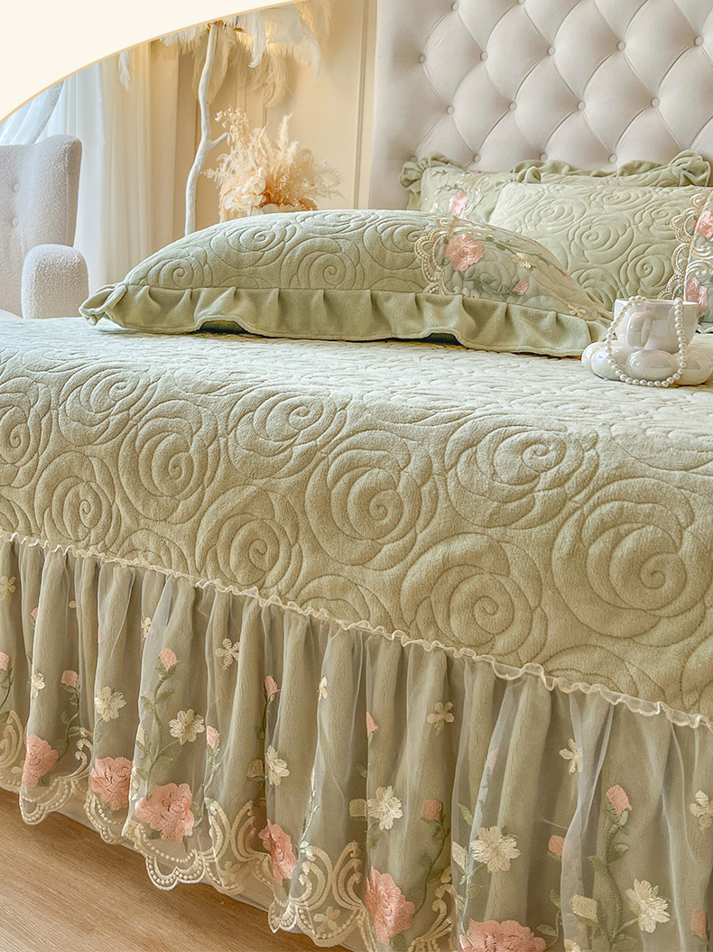 • 91家纺网 家纺一手货源 找家纺 (总)恋尚 2025新款柔软牛奶绒保暖蕾丝床裙四件套-玫瑰故事(控价305),玫瑰故事-蜜桃粉,玫瑰故事-奶茶色,玫瑰故事-椰蓉灰,玫瑰故事-香芋紫,玫瑰故事-清新粉,玫瑰故事-香草绿