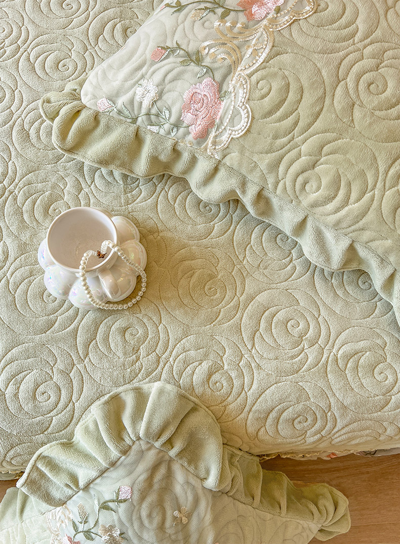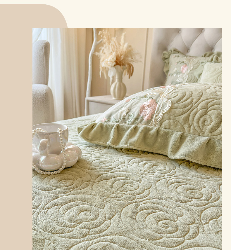 • 91家纺网 家纺一手货源 找家纺 恋尚 2025新款雕花牛奶绒保暖单床盖 床盖单件-巴黎春天(控价145) 巴黎春天-香草绿