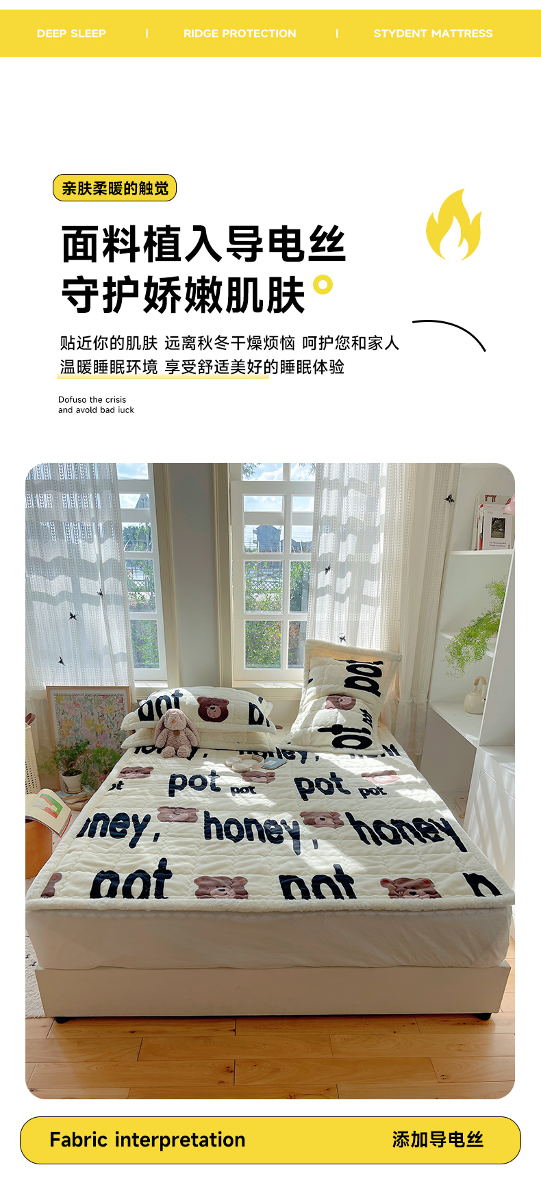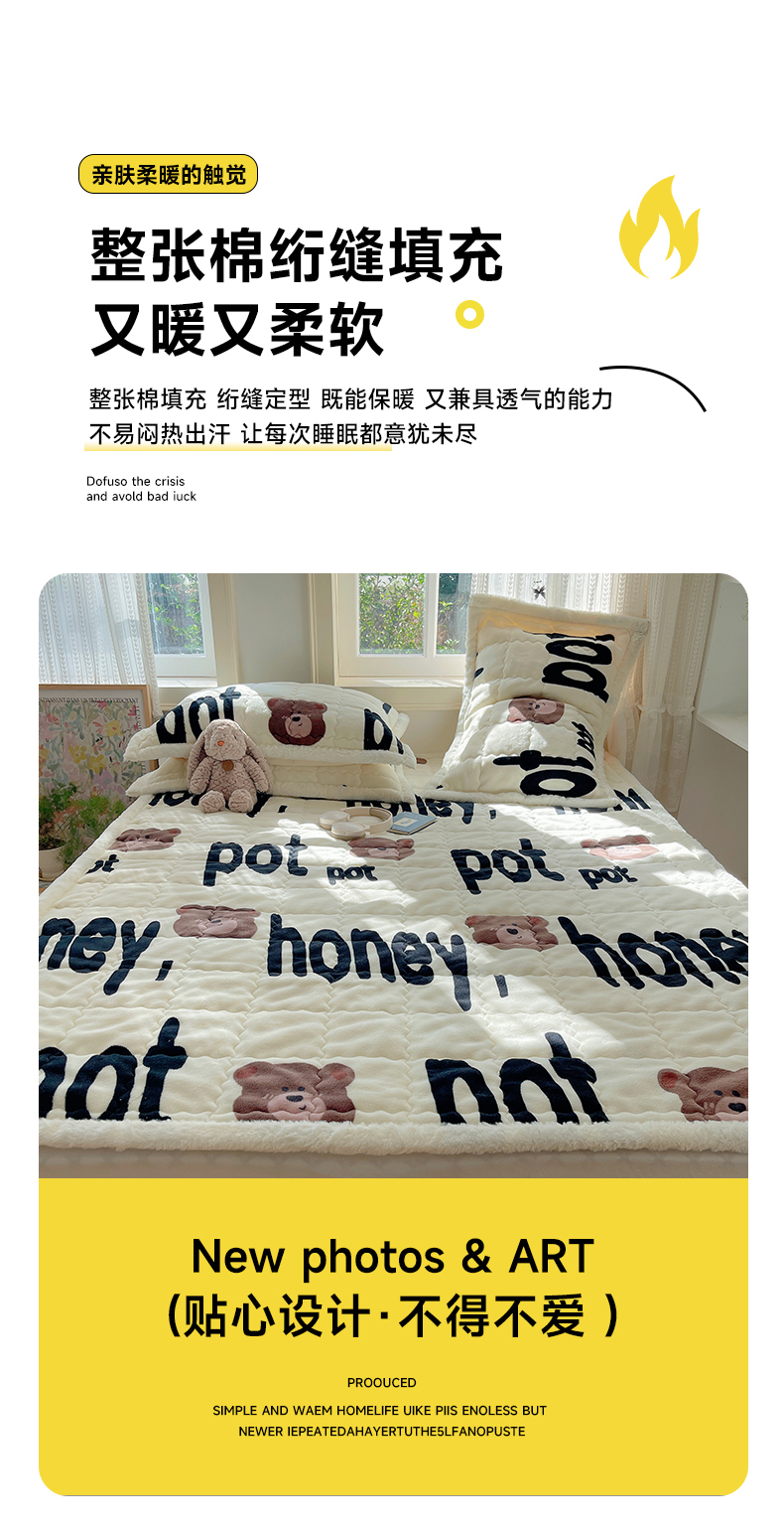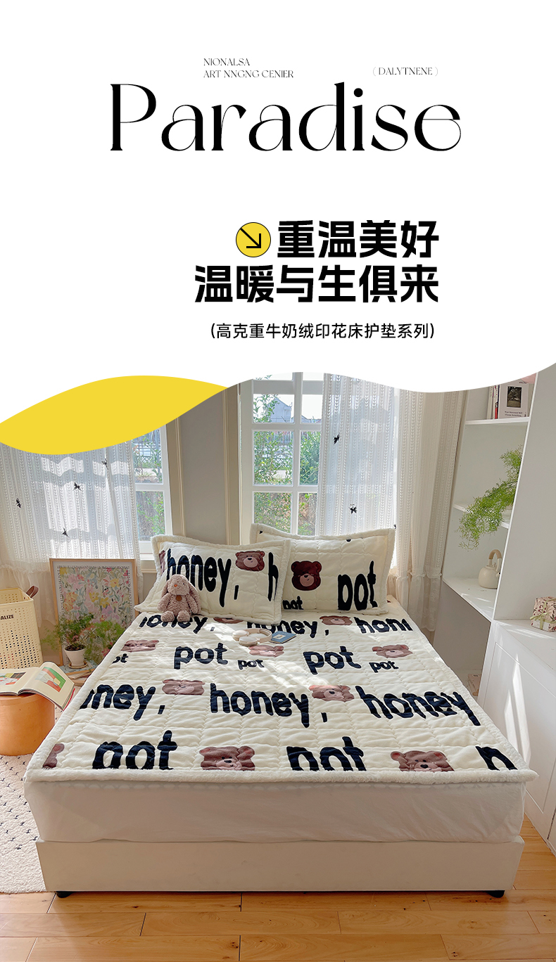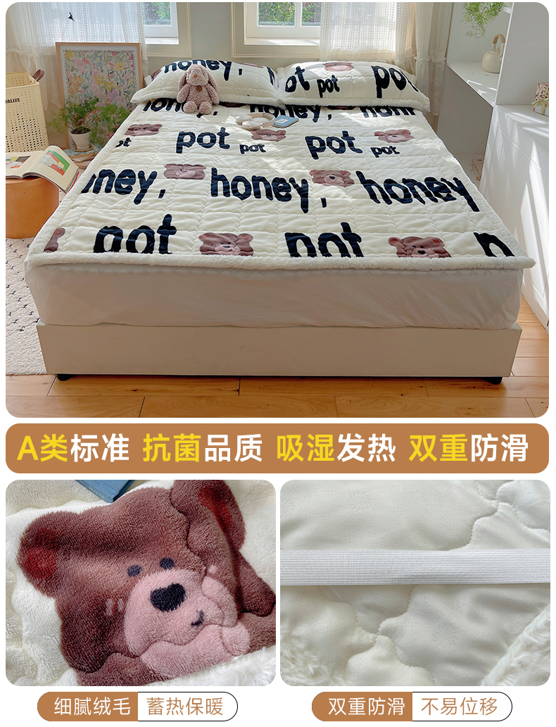商品名称:红嘴企鹅 2025新款高克重牛奶绒印花床护垫床褥 字母熊