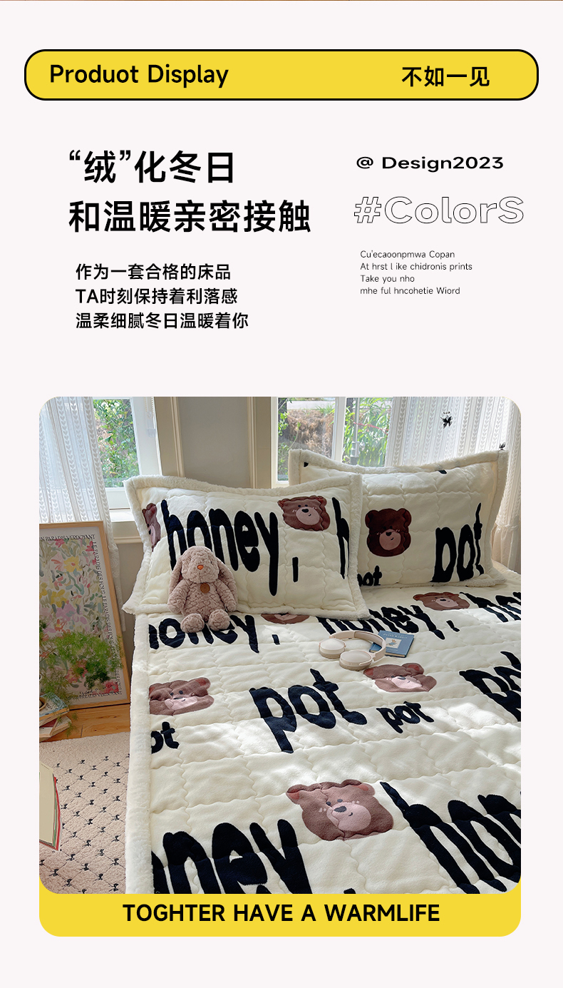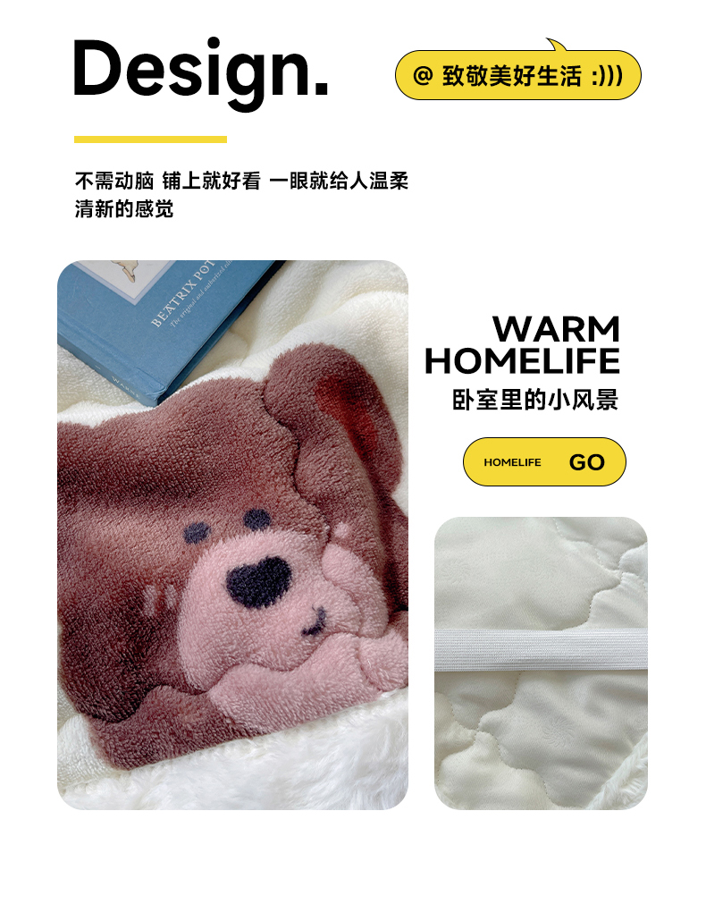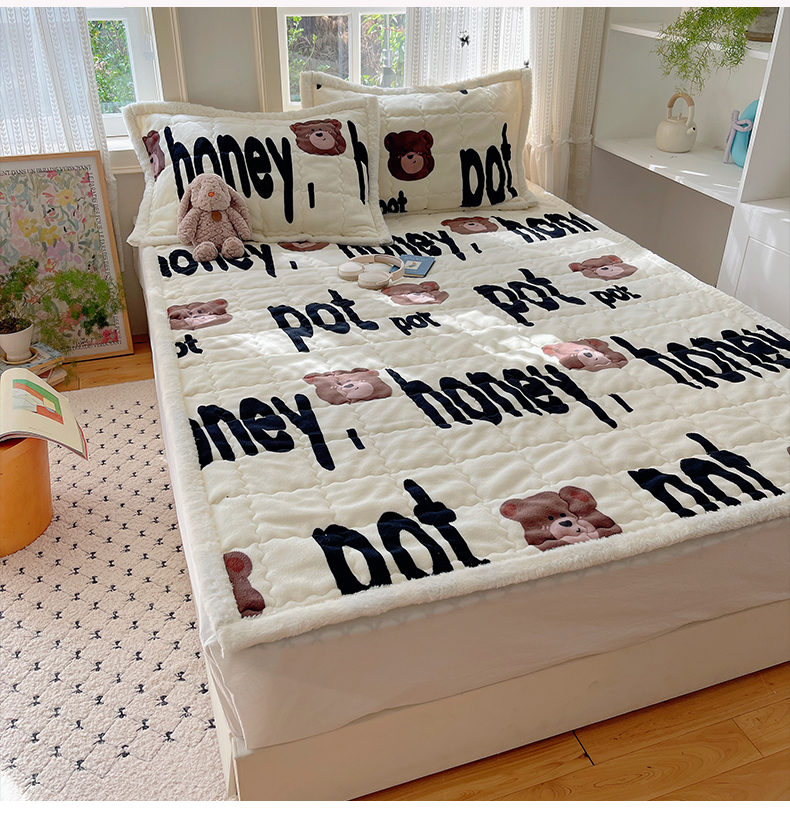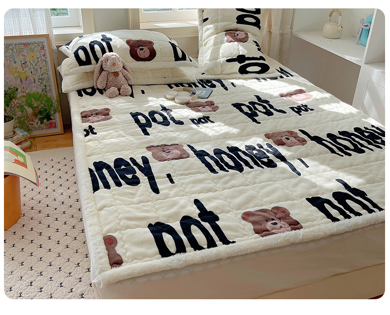 红嘴企鹅 2025新款高克重牛奶绒印花床护垫床褥 字母熊