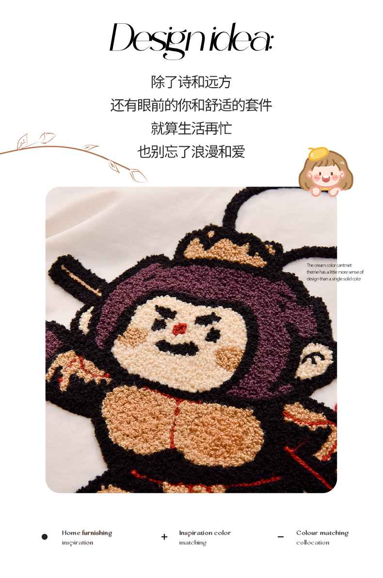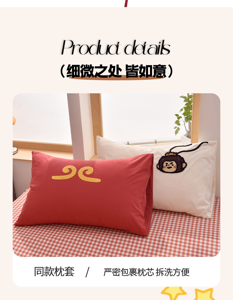 商品名称:炫拼家纺 2025新款A类全棉40支水洗棉毛巾绣四件套-卡通多巴胺 美猴王