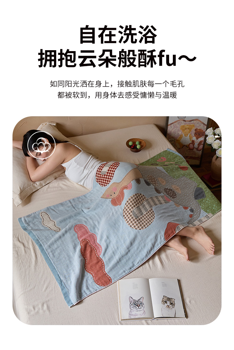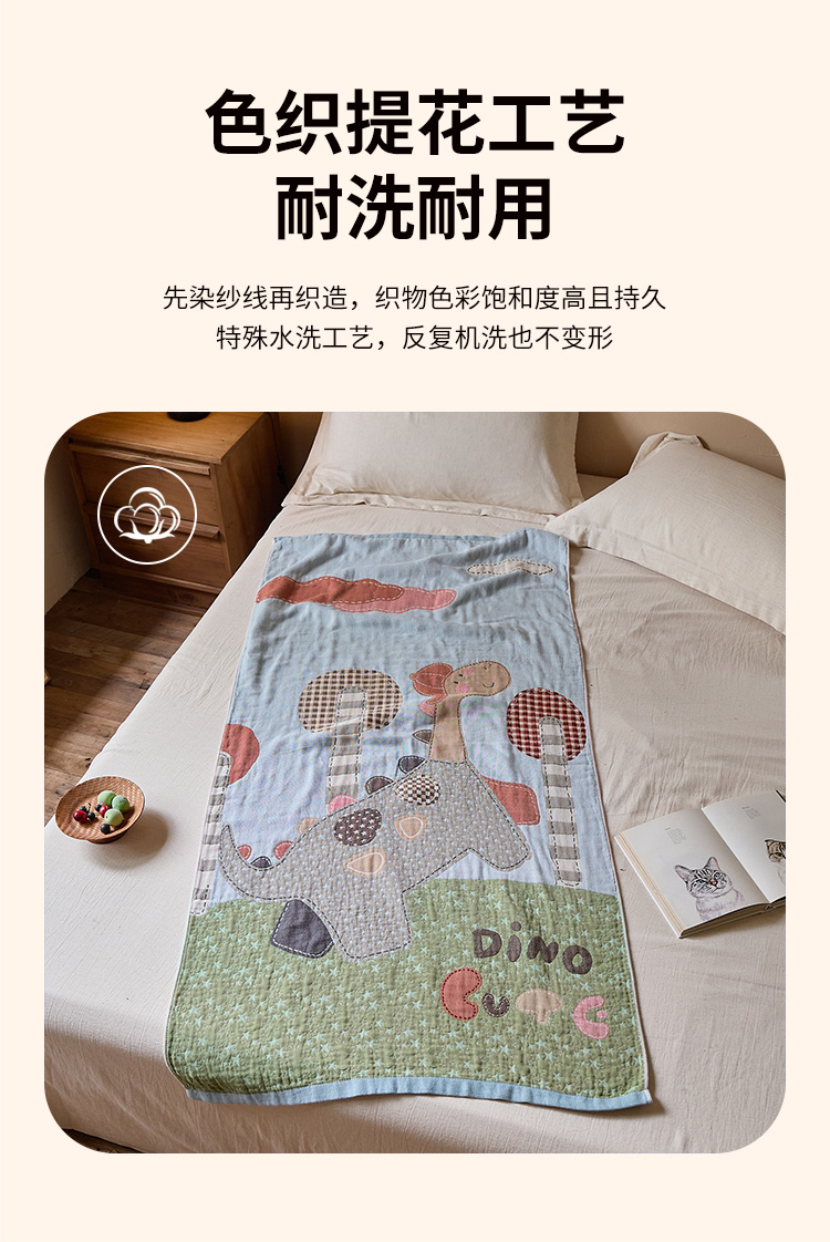 当前位置: 91家纺网 > 商品网购 > 床上用品 > 枕巾 > 沐瑟家纺 2025新款卡通A类全棉四层纱布浴巾加大毛巾-第五组 小恐龙 150*75cm