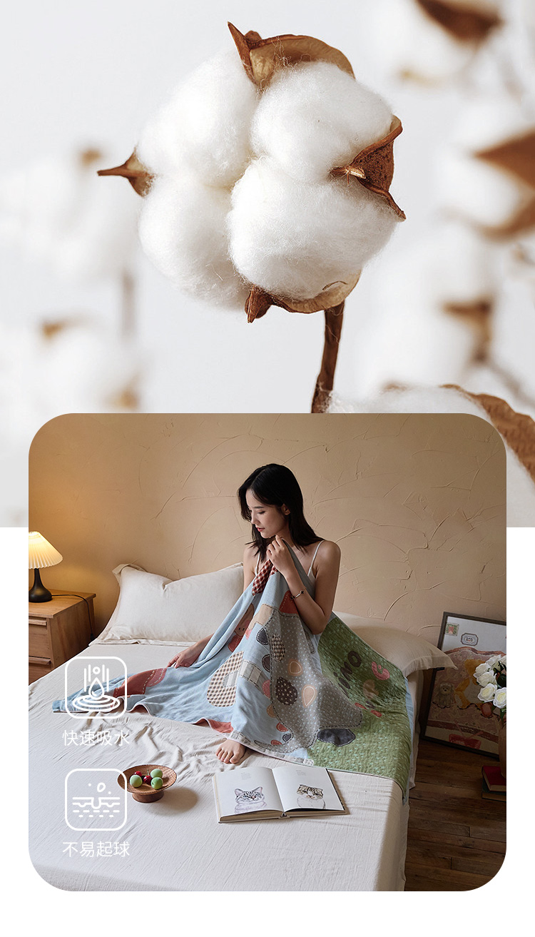 (总)沐瑟家纺 2026新款全棉四层纱布床盖-星星和心情系列,心情-粉色,心情-灰蓝,心情-卡其,星星-黄色,星星-灰色,星星-蓝色,星星-紫色,组合
