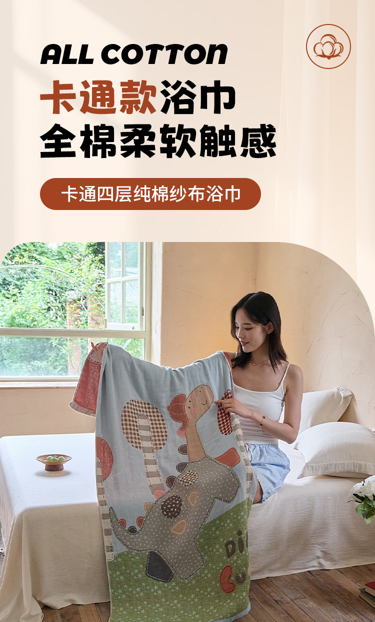 • 91家纺网 家纺一手货源 找家纺 沐瑟家纺 2025新款卡通A类全棉四层纱布浴巾加大毛巾-第五组 小恐龙 150*75cm 91家纺网 家纺一手货源 找家纺 沐瑟家纺 2025新款卡通A类全棉四层纱布浴巾加大毛巾-第五组 小恐龙 150*75cm