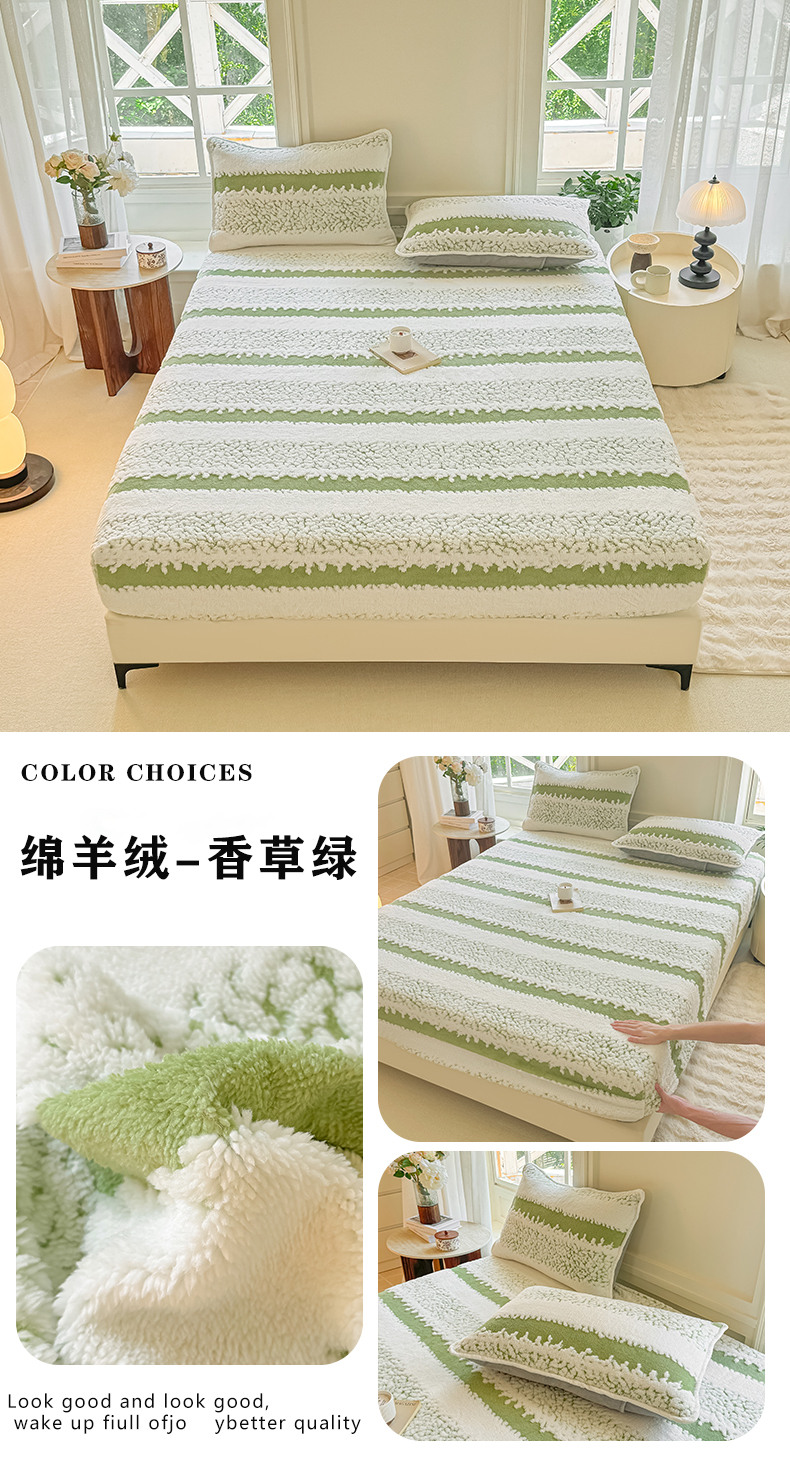 小叮当家纺仓储工厂店 2025新款提花绵羊绒韩国绒床笠单品床笠床笠单件单床笠 绵羊绒-香草绿