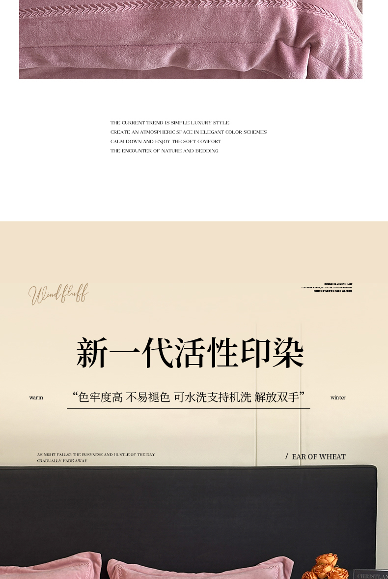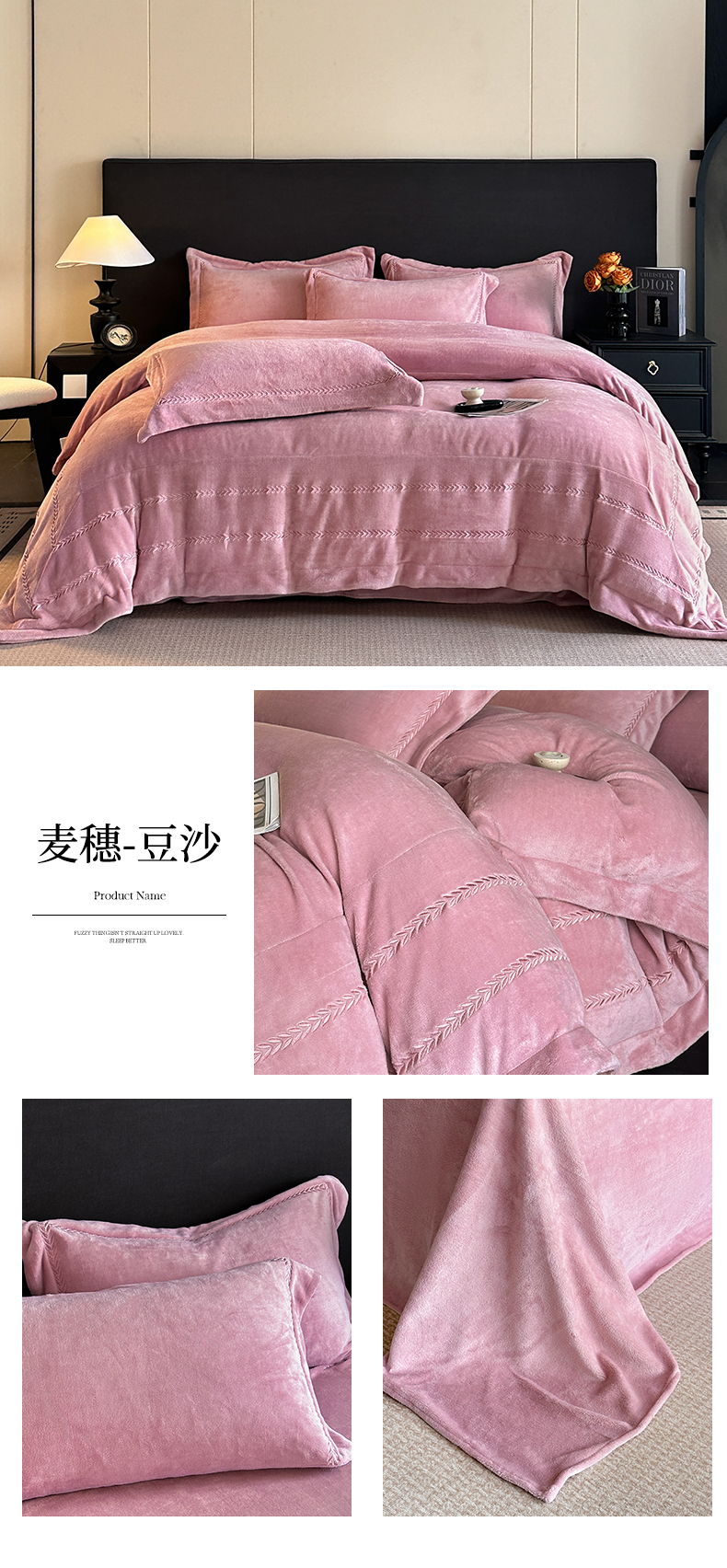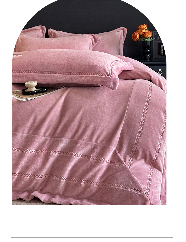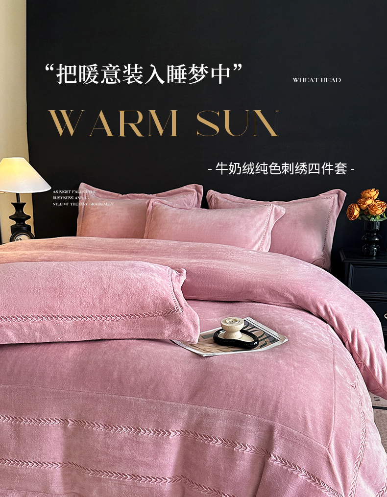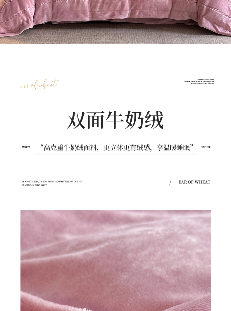 商品名称:苏源家居 2025新款加厚牛奶绒大拼角刺绣冬款四件套-麦穗绒 麦穗-豆沙