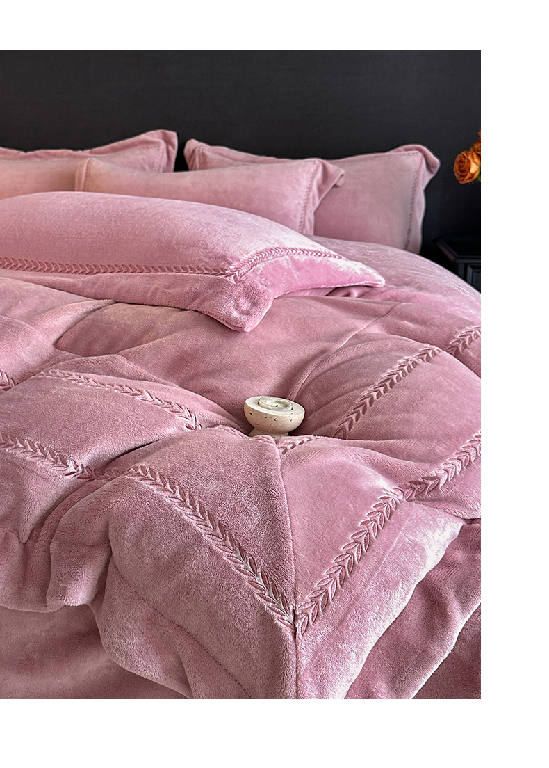 苏源家居 2025新款加厚牛奶绒大拼角刺绣冬款四件套-麦穗绒 麦穗-豆沙