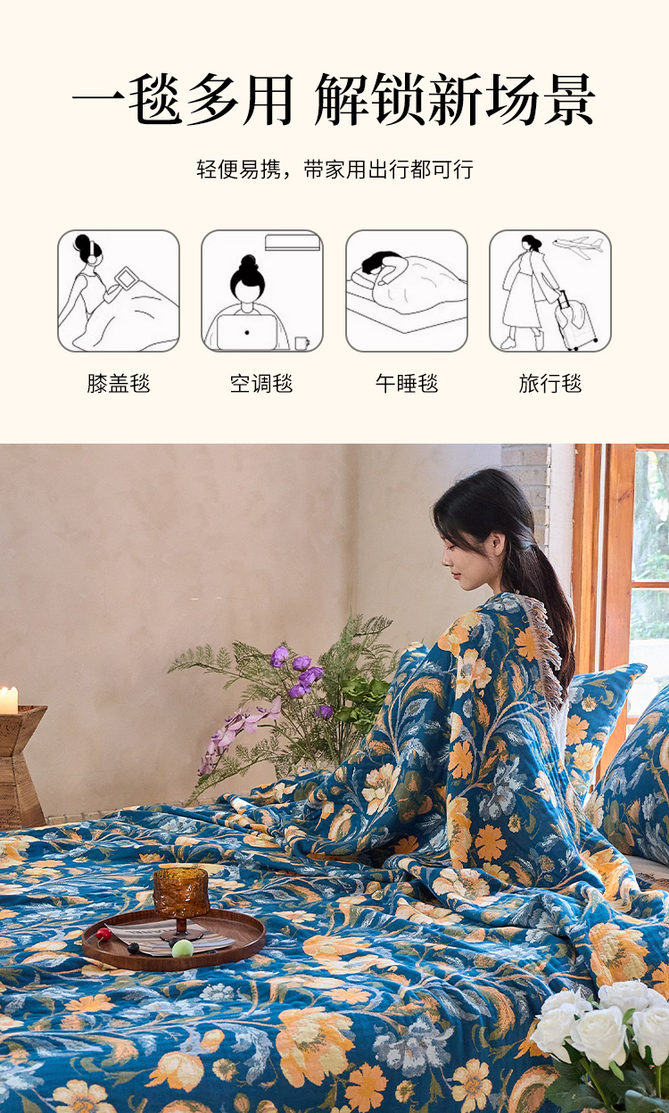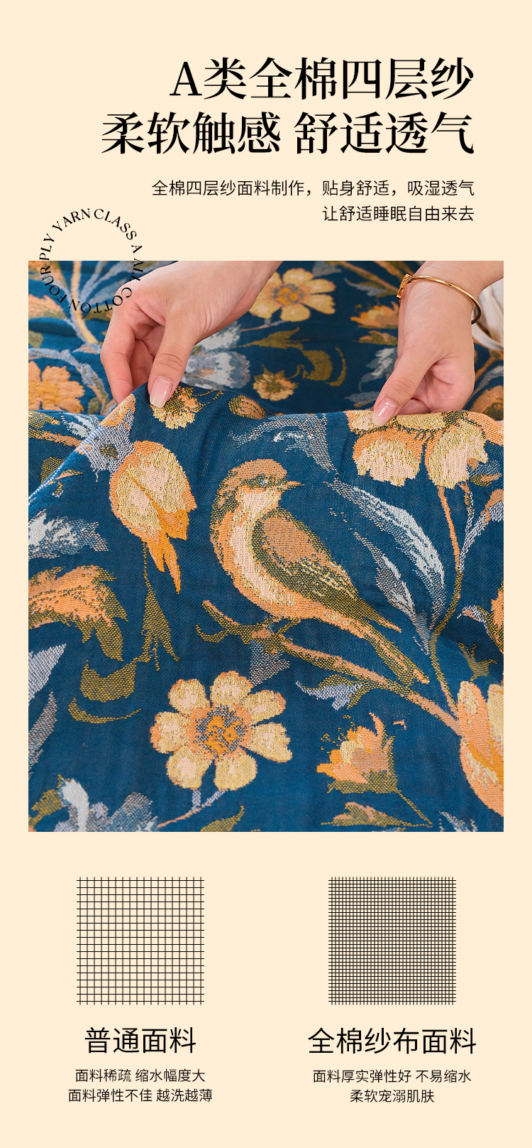 (总)沐瑟家纺 2025新款亲肤柔软全棉纱布中国风盖毯毯子,百花集,翠影鸟-蓝色,花想容,花鸟韵,蝶语-绿,蝶语-淡粉,花蝶-米,比翼鸟,墨葵,绮梦花