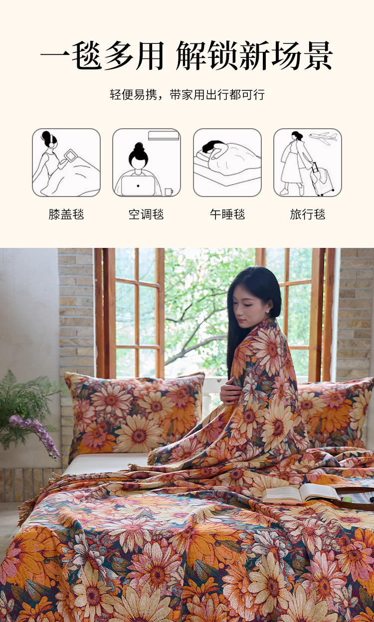 (总)沐瑟家纺 2025新款简约风多功能纱布盖毯纱布毯子毛巾被床盖沙发巾单毯枕巾枕套三件套,H本色,H橙色,H咖色,大马士革本色