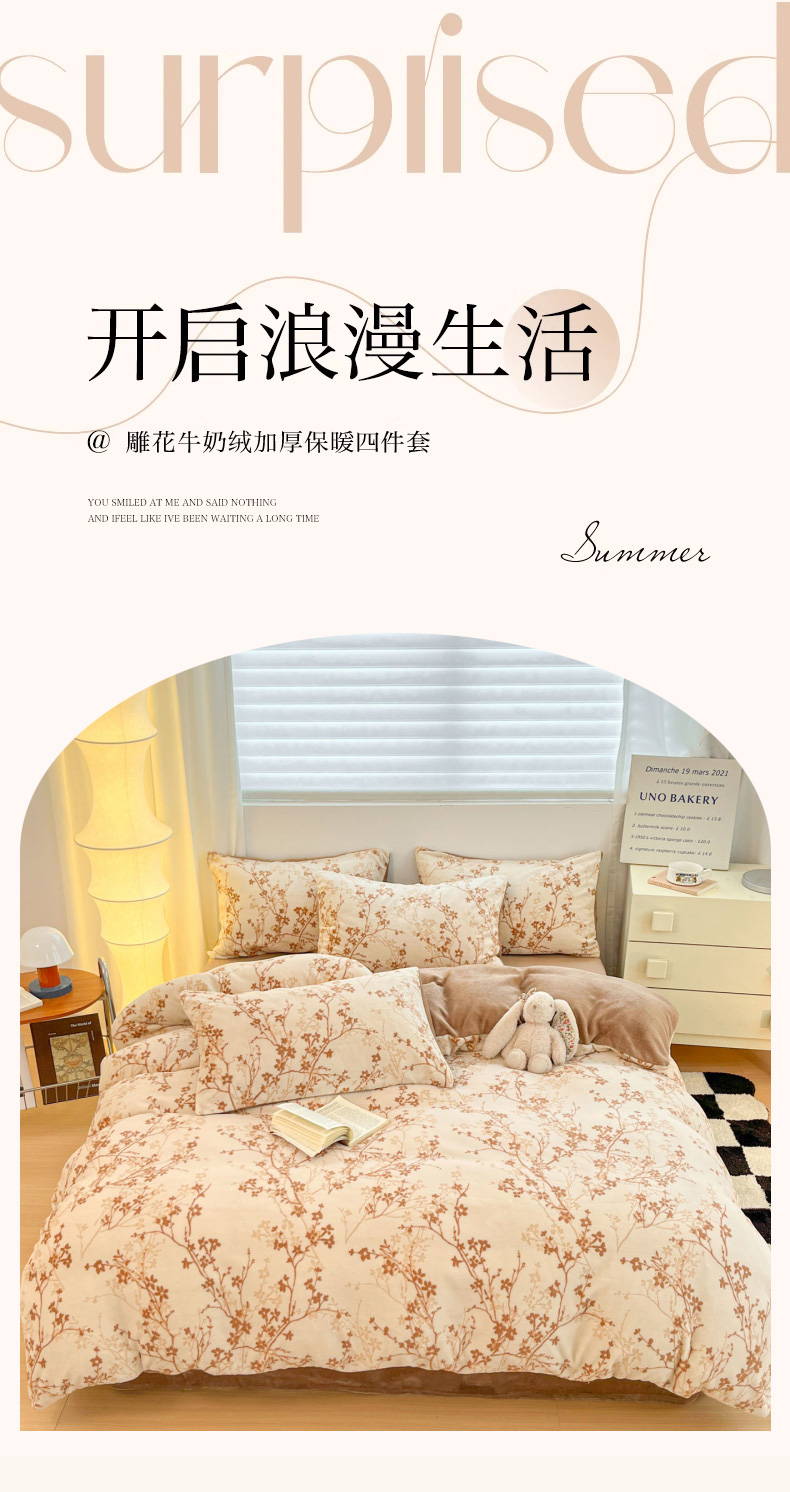 当前位置: 91家纺网 > 商品网购 > 床品套件 > 四件套 > 牛奶绒四件套 > 沐慕 2025新款A类220g加厚烂花牛奶绒B类200g牛奶绒四件套 雾蝶梦粉