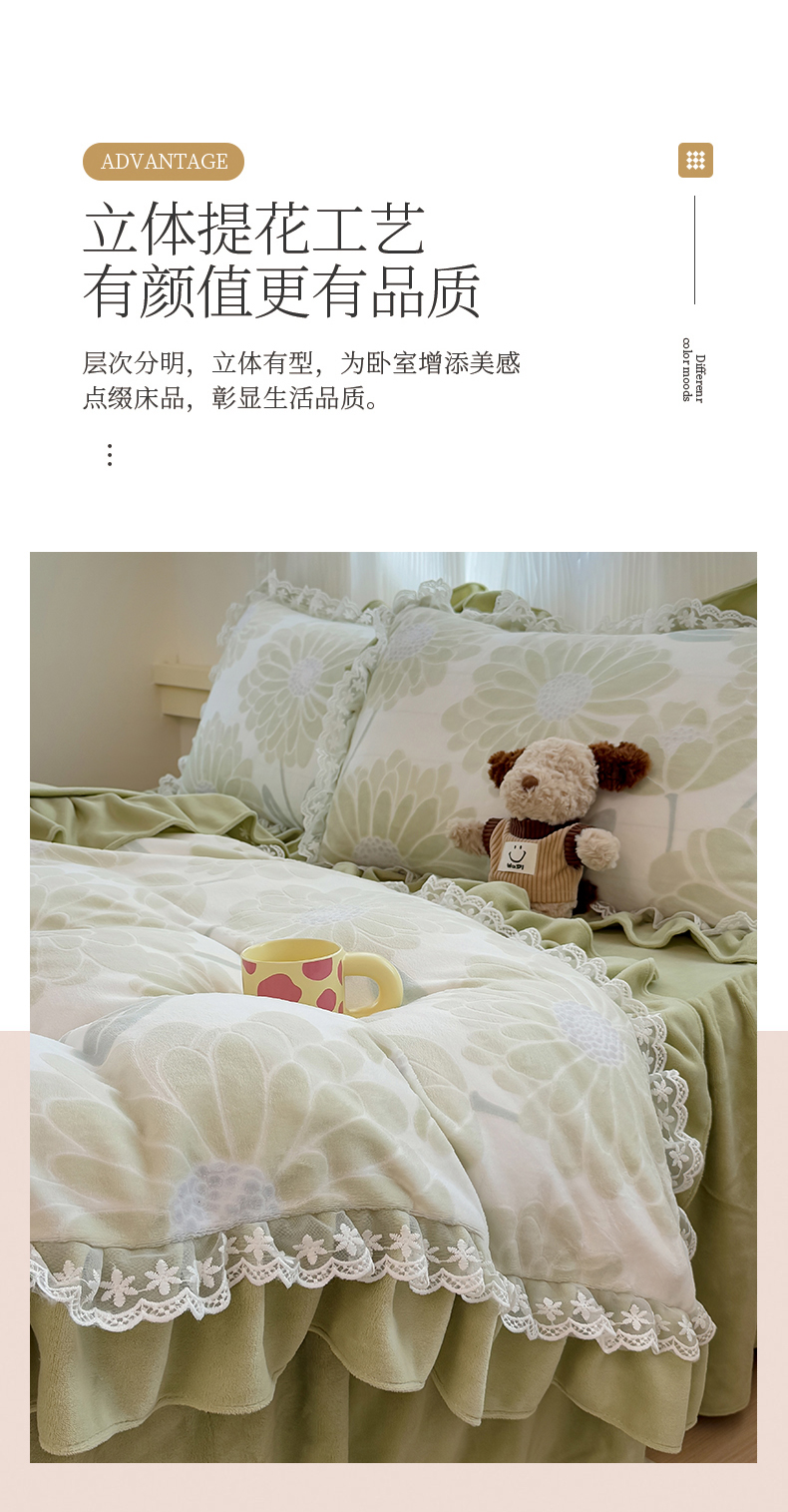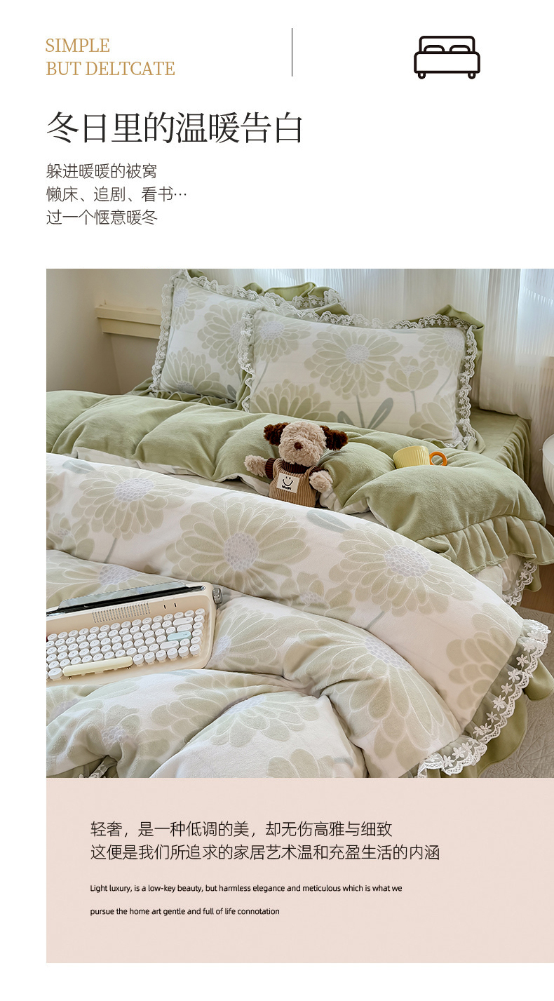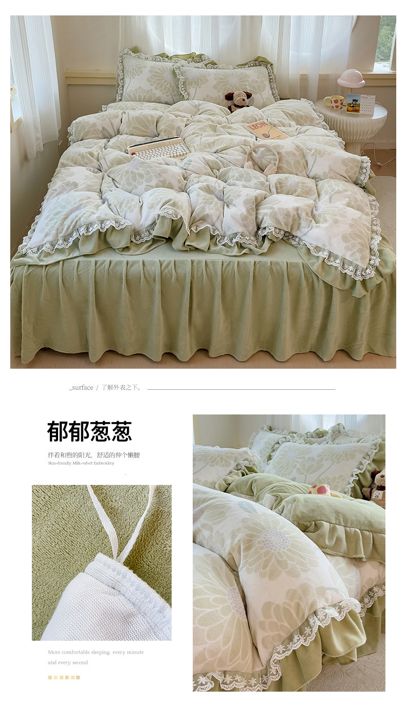 当前位置: 91家纺网 > 商品网购 > 床品套件 > 四件套 > 牛奶绒四件套 > KA家纺 2025新款冬双层蕾丝花边雕花牛奶绒床裙款四件套 郁郁葱葱