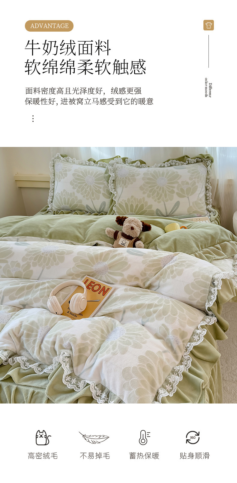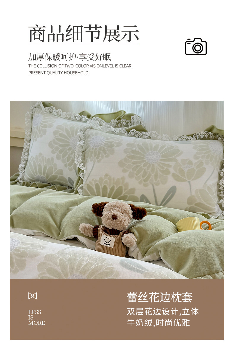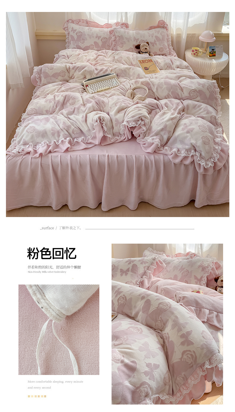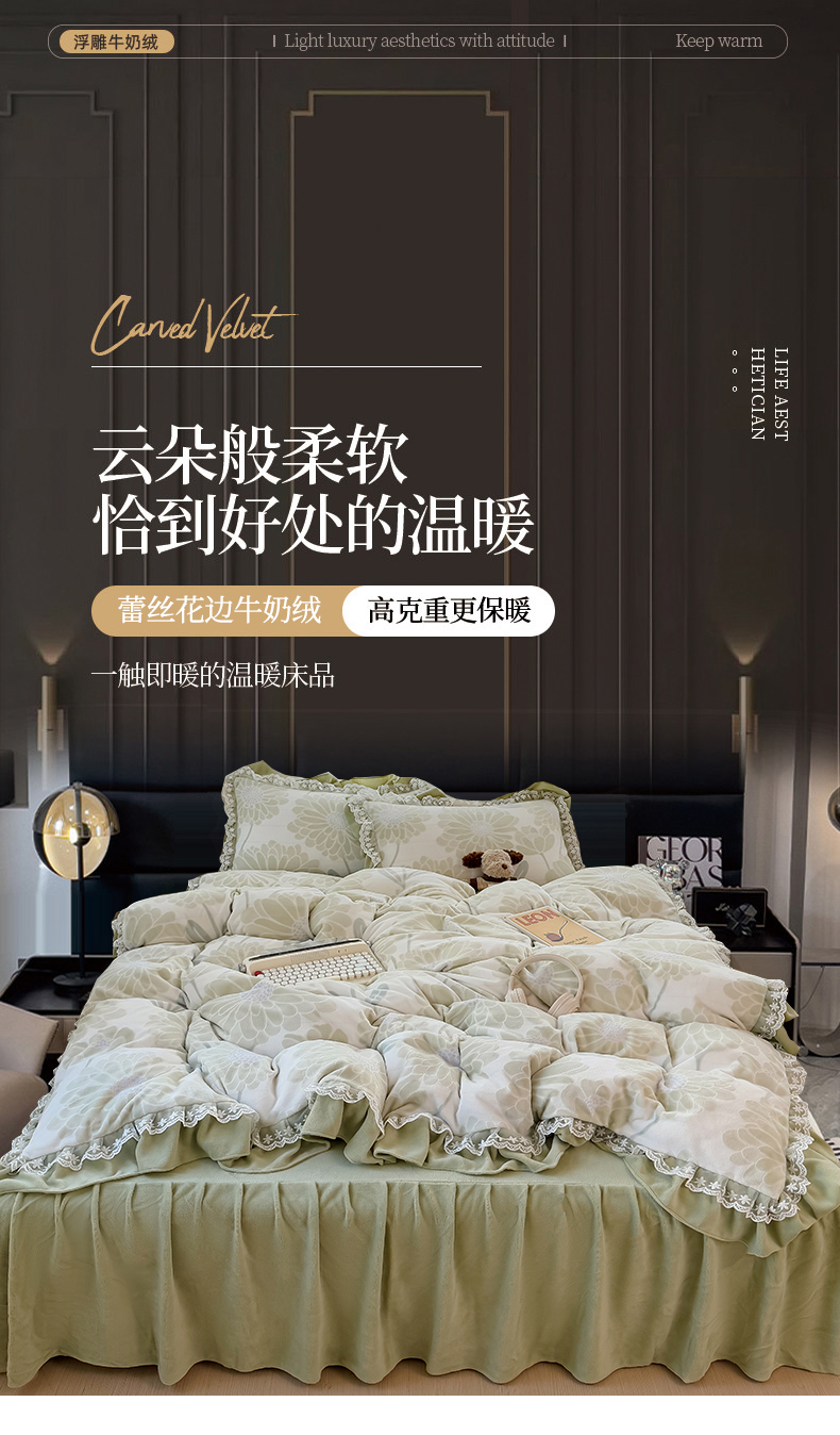 当前位置: 91家纺网 > 商品网购 > 床品套件 > 四件套 > 牛奶绒四件套 > KA家纺 2025新款冬双层蕾丝花边雕花牛奶绒床裙款四件套 郁郁葱葱
