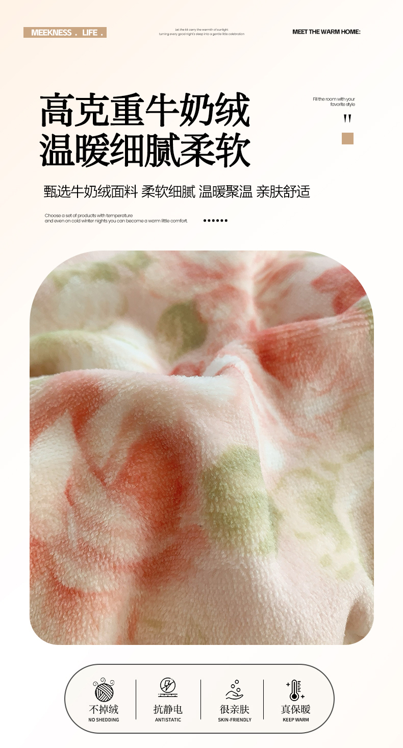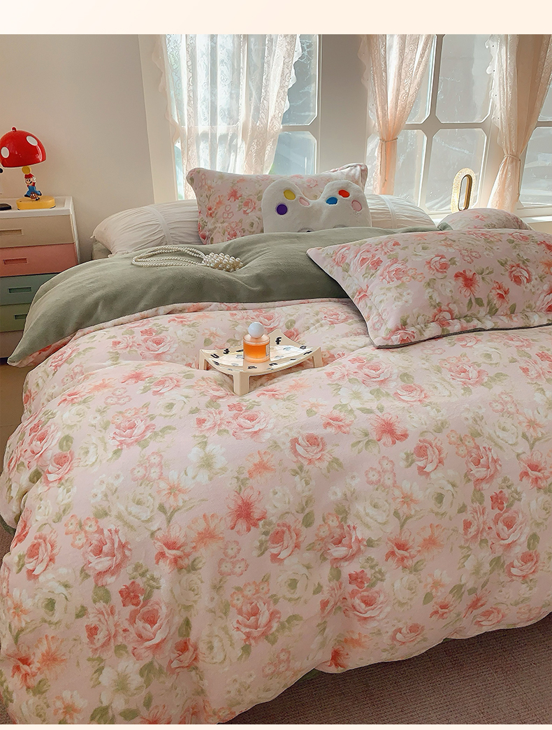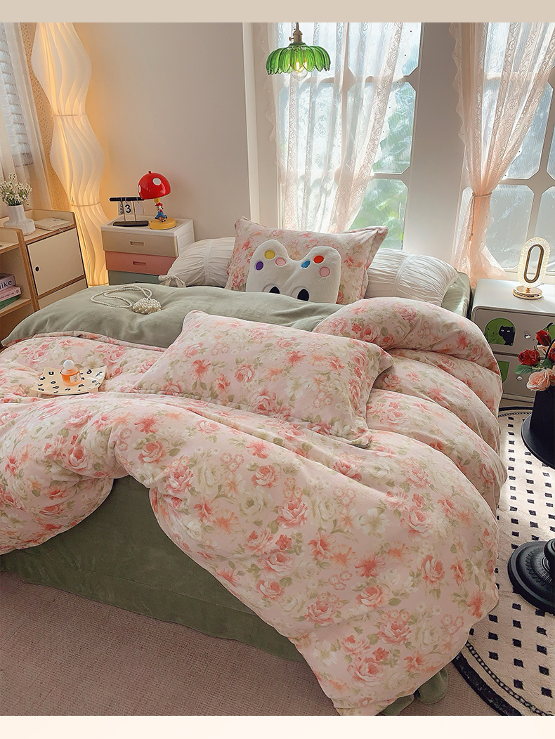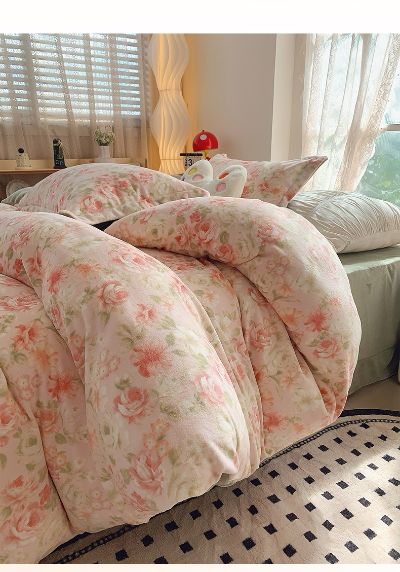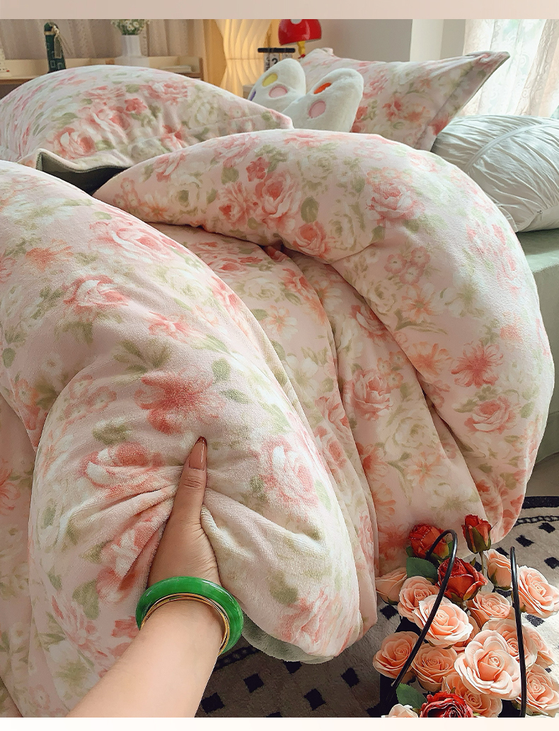 商品名称:奈萝家纺 2025新款加厚小清新印花牛奶绒三件套四件套 花舞轻盈