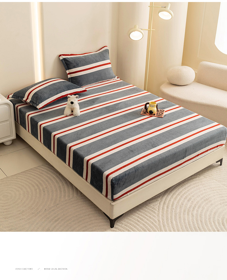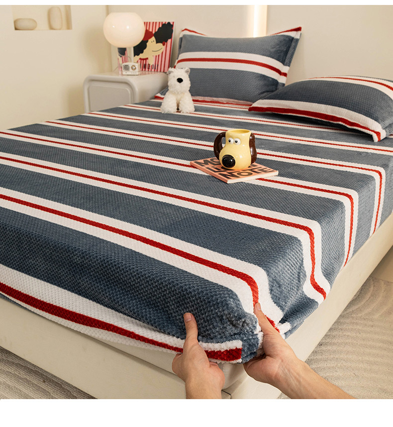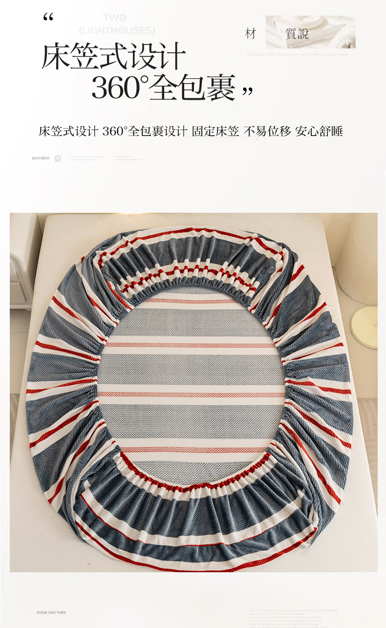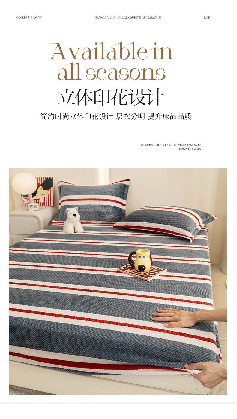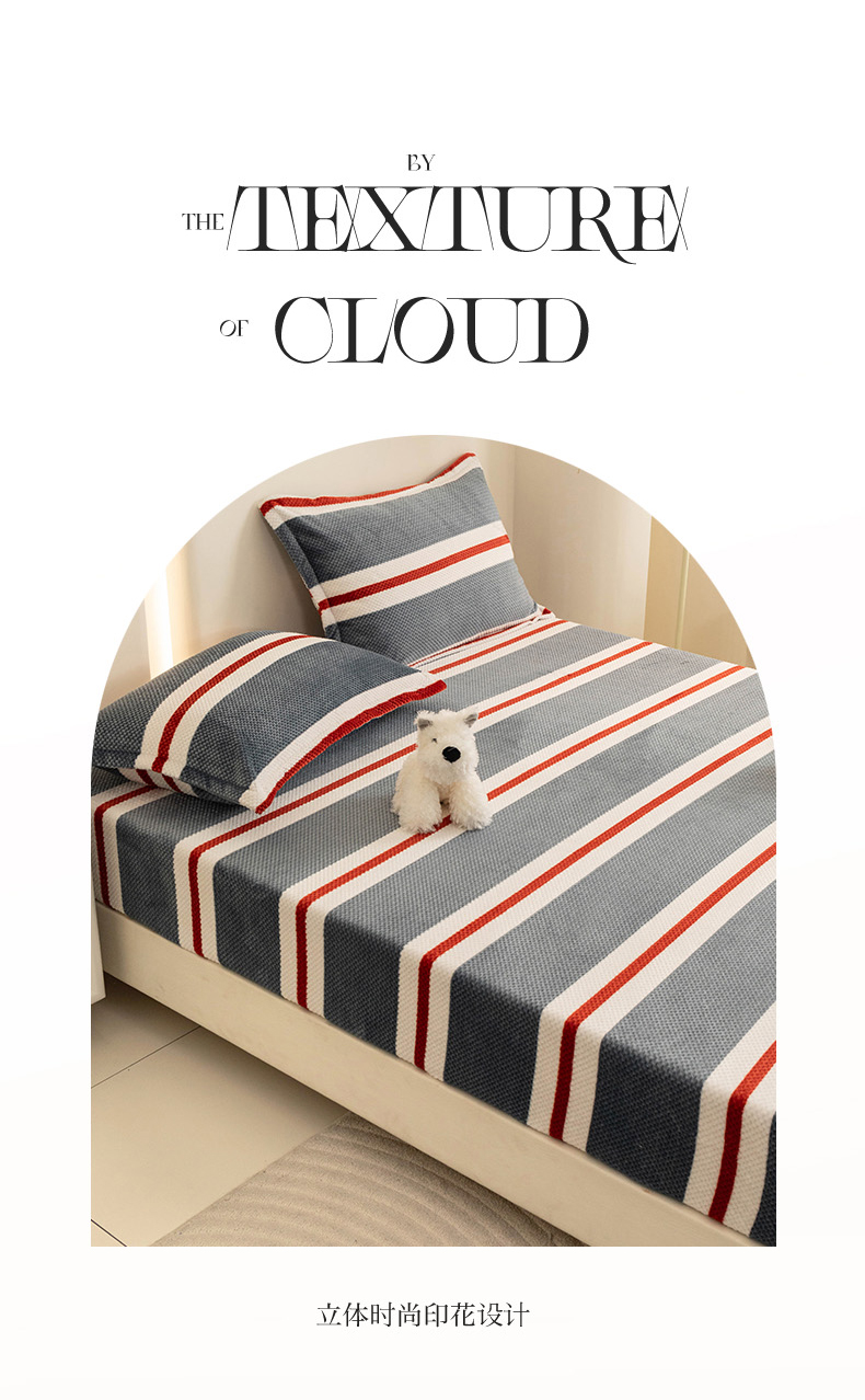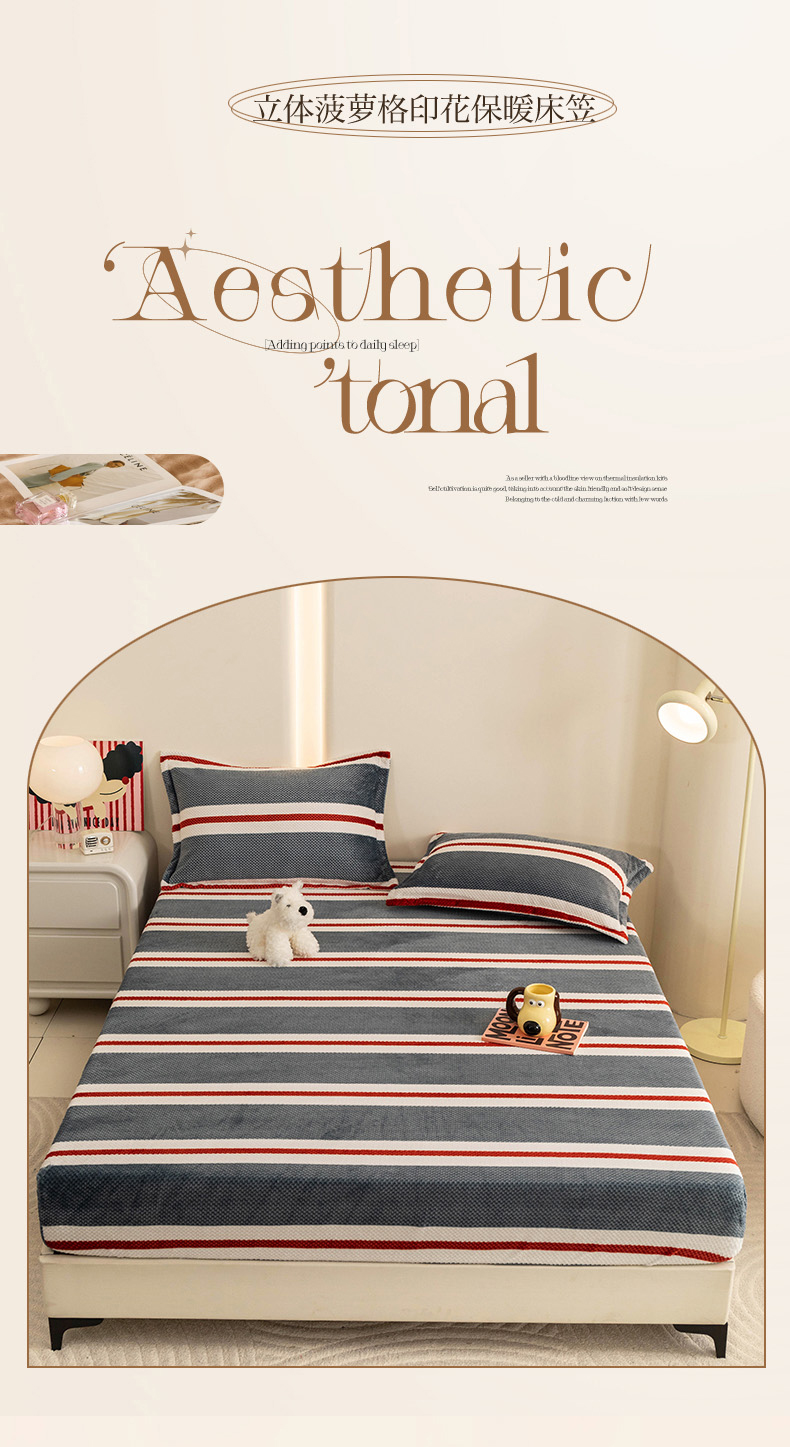倾慕家纺 2026新款立体菠萝格印花保暖床笠 英伦横条