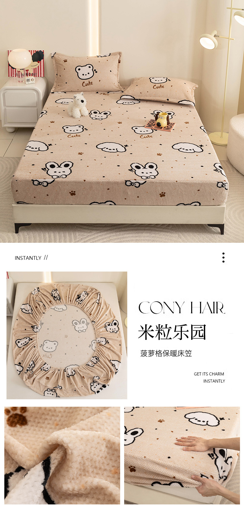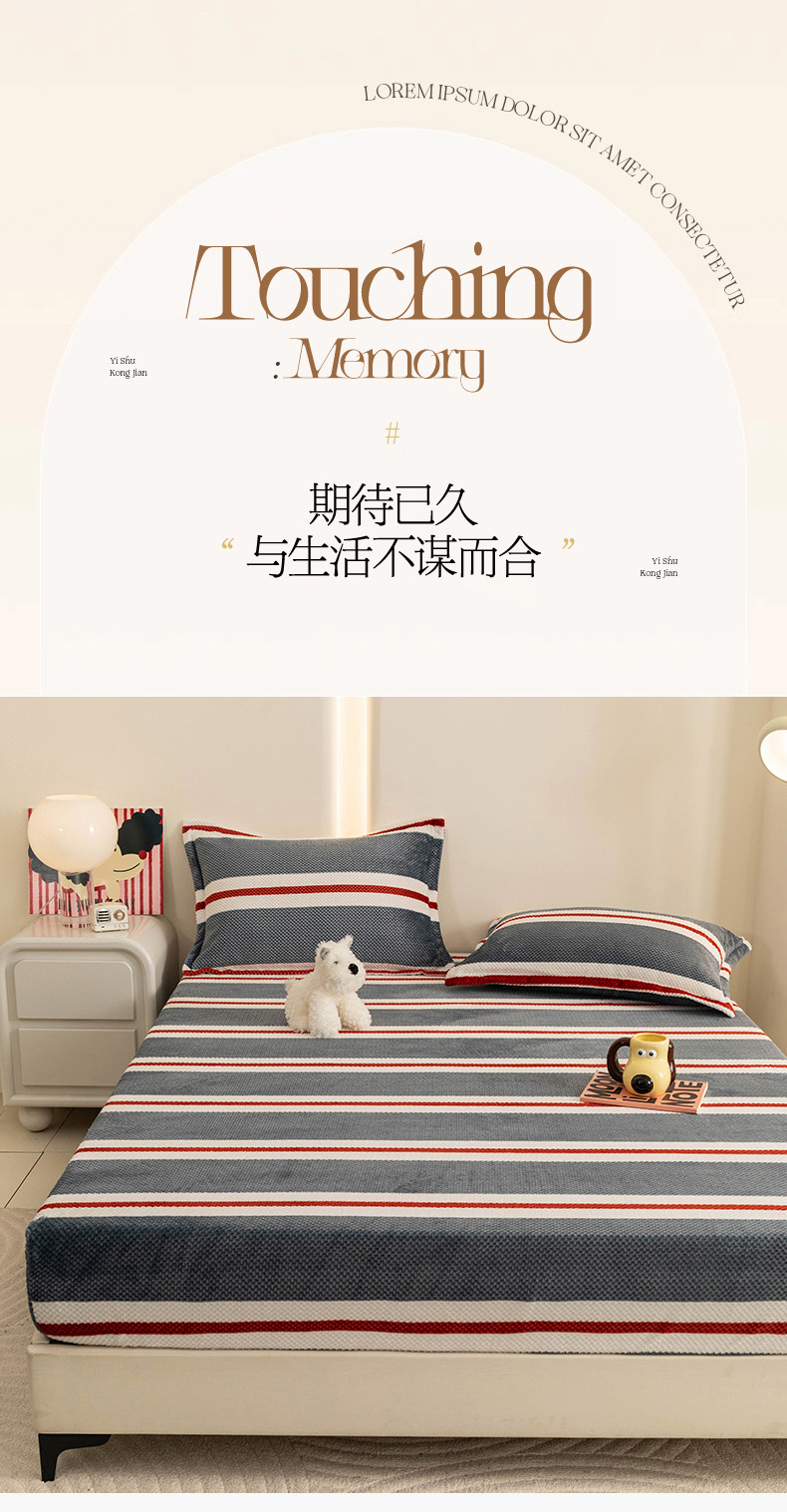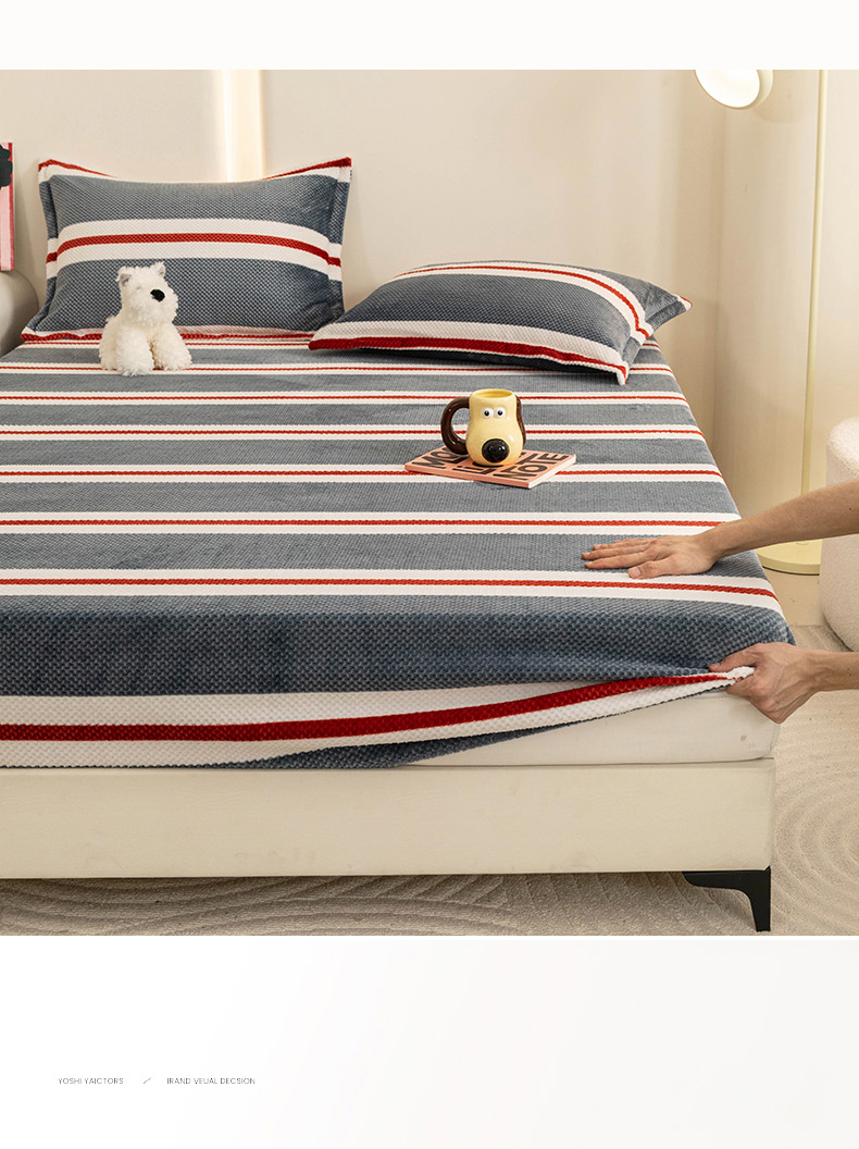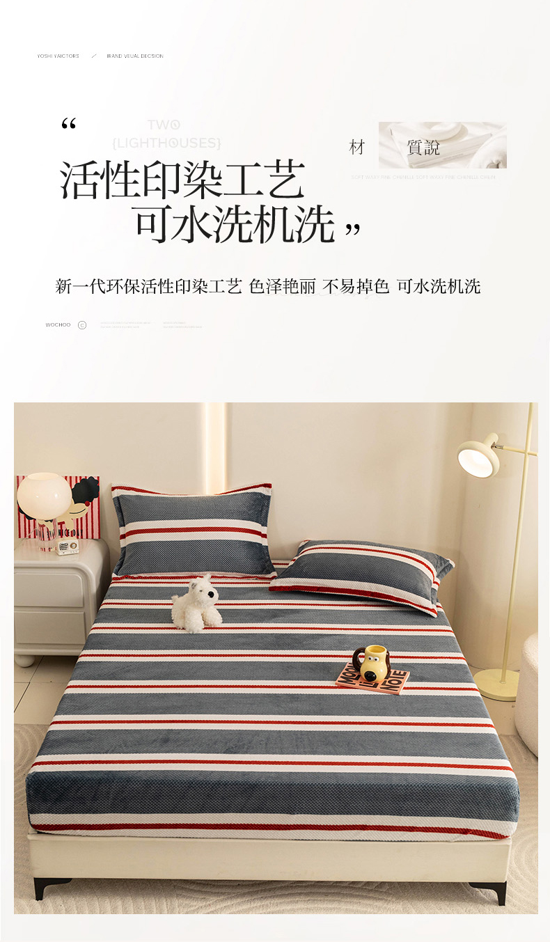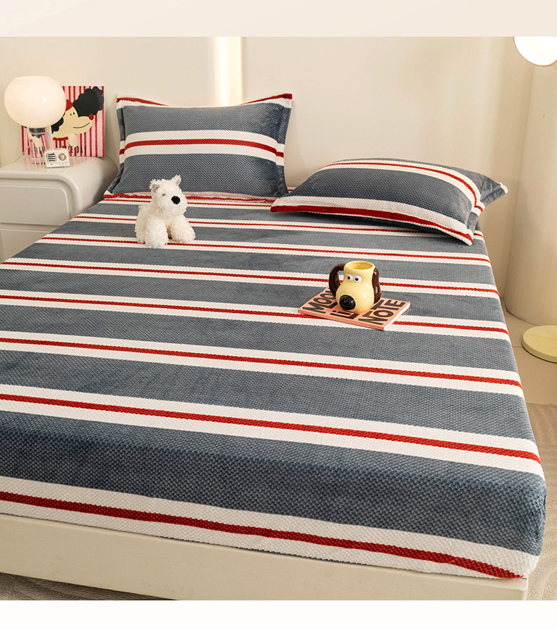 倾慕家纺 2026新款立体菠萝格印花保暖床笠 英伦横条