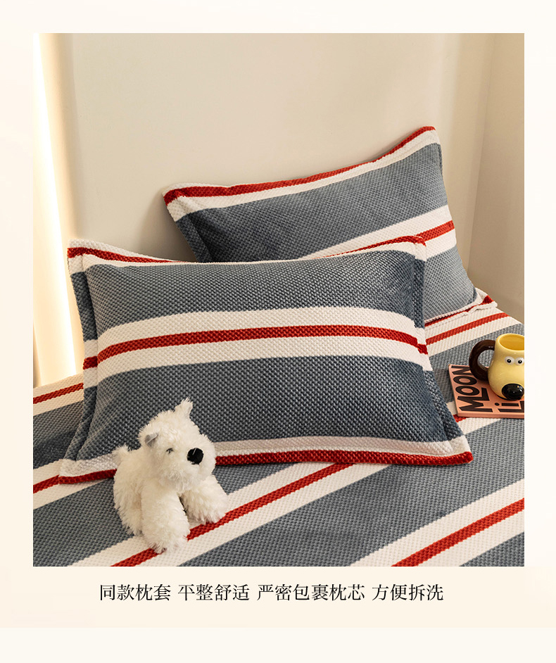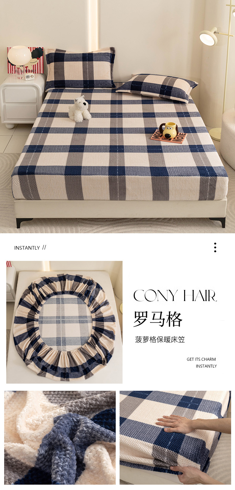 商品名称:倾慕家纺 2026新款立体菠萝格印花保暖床笠 英伦横条