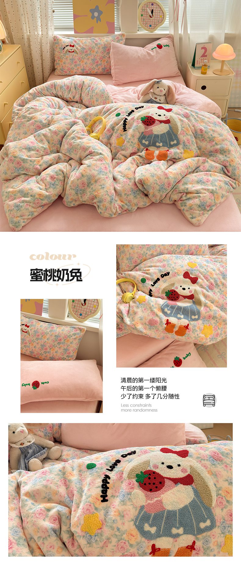当前位置: 91家纺网 > 商品网购 > 床品套件 > 四件套 > 牛奶绒四件套 > 贝扬思家纺 2025新款高克重牛奶绒可爱系卡通毛巾绣四件套系列-小红书推荐 乳酪小猫