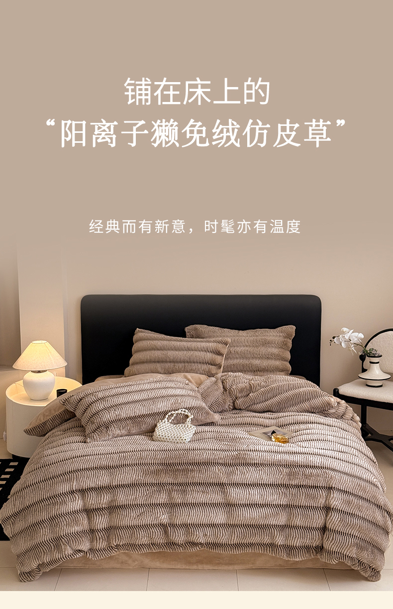 当前位置: 91家纺网 > 商品网购 > 床品套件 > 四件套 > 兔毛绒四件套 > 眠博士 2025新款阳离子兔兔绒四件套 兔兔绒阳离子-波纹暖咖