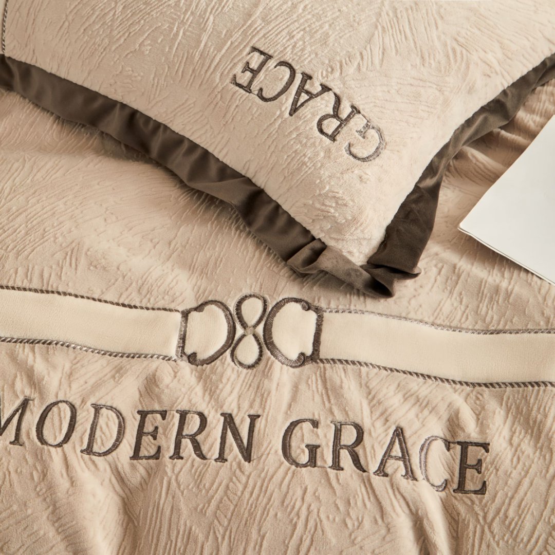 商品名称:七里香 2025新款雕花绒牛奶绒刺绣四件套-云锦系列 云锦-卡其