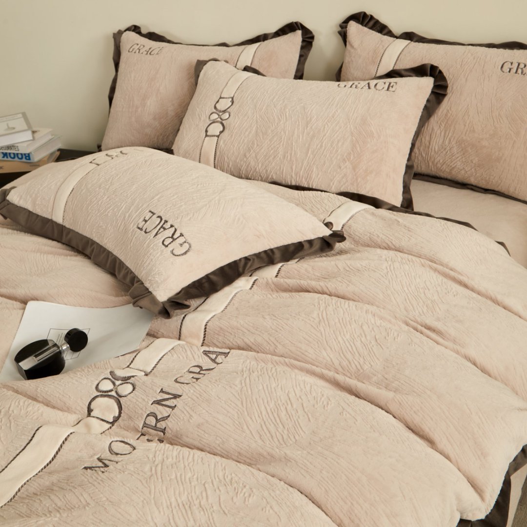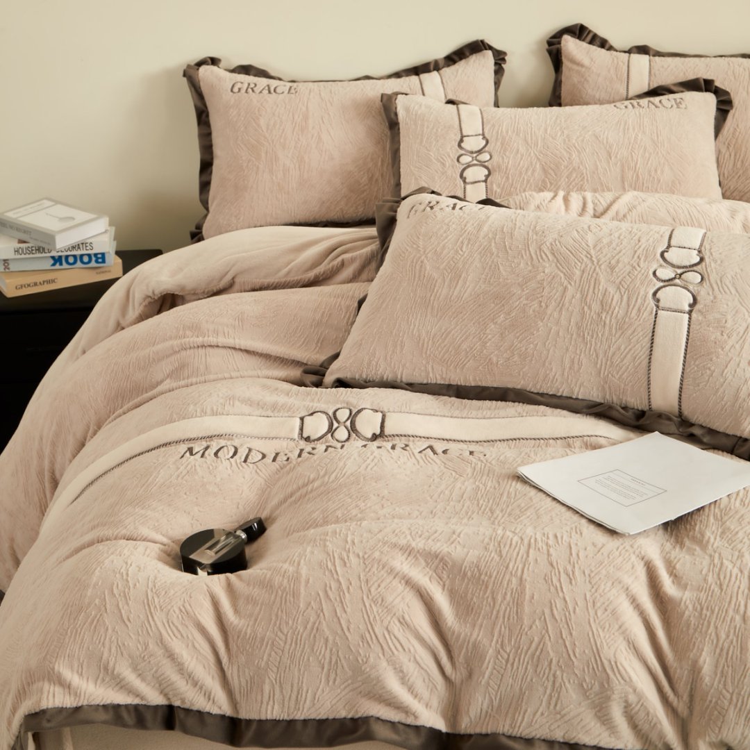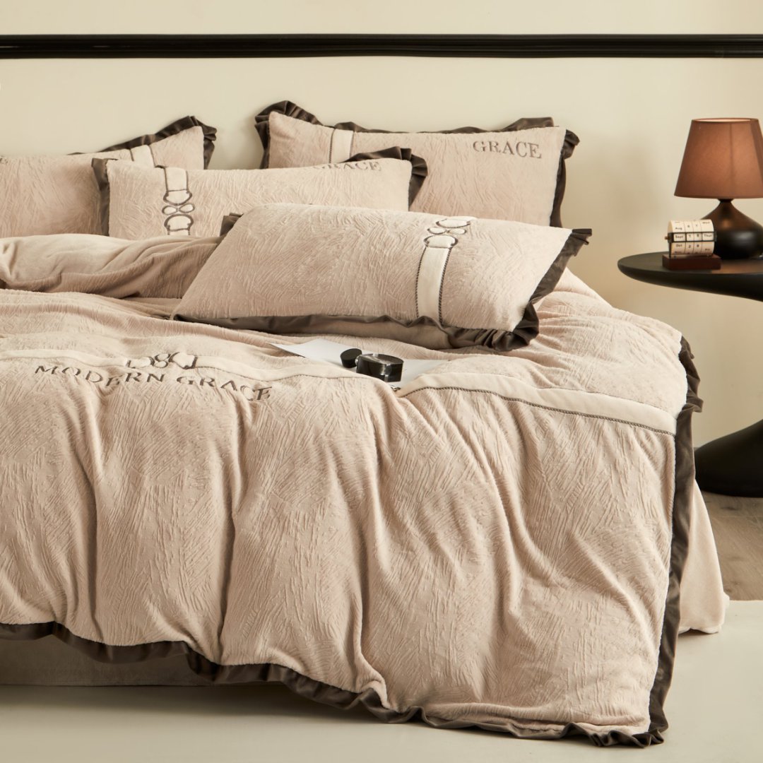 (总)七里香 2025新款雕花绒牛奶绒刺绣四件套-云锦系列,云锦-粉玉,云锦-灰色,云锦-咖色,云锦-卡其,云锦-米黄