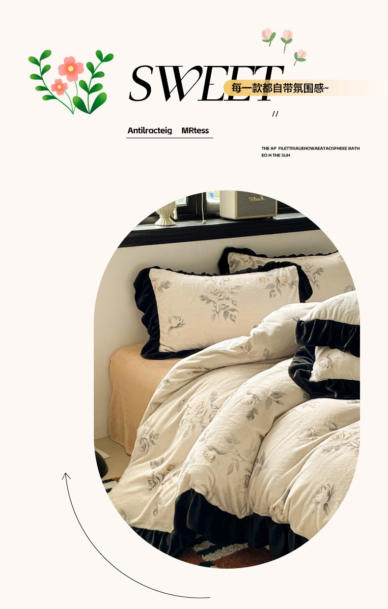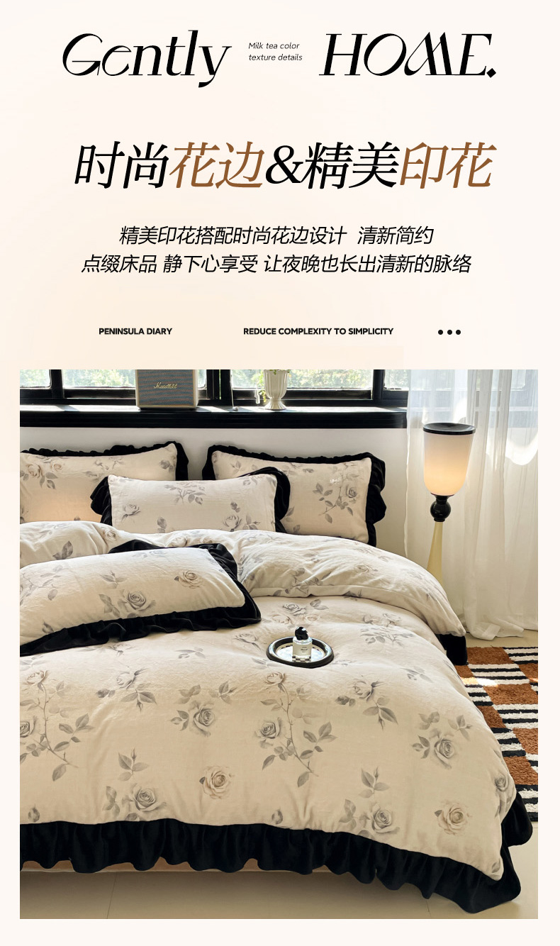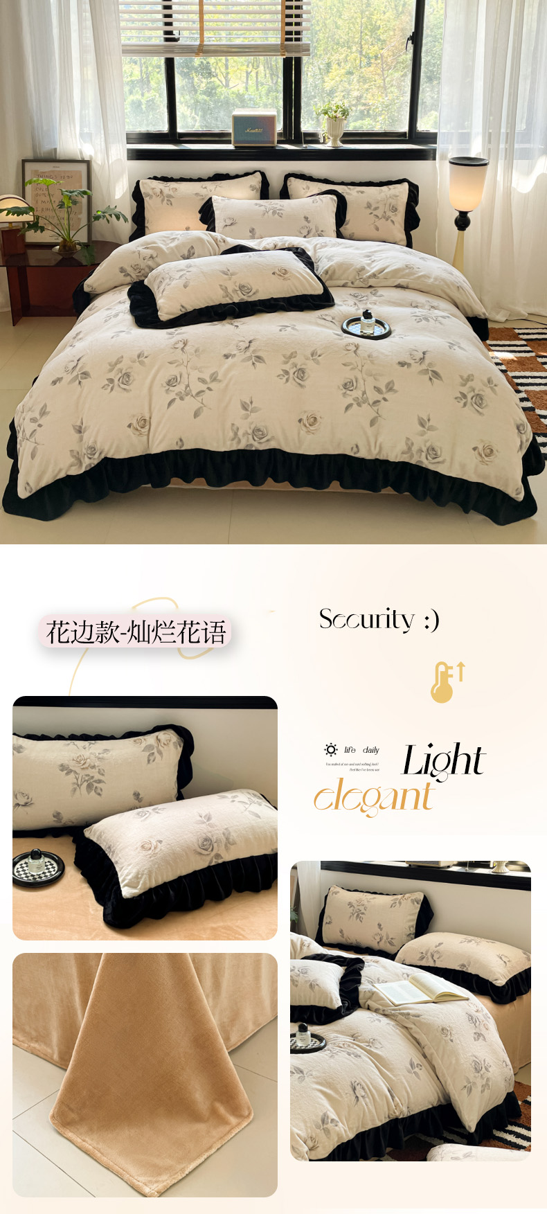 当前位置: 91家纺网 > 商品网购 > 床品套件 > 四件套 > 牛奶绒四件套 > 慕澄家纺 2025新款赫本风牛奶绒花边款四件套 花边款-灿烂花语