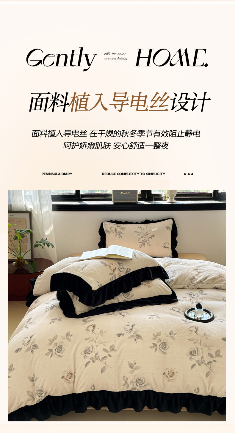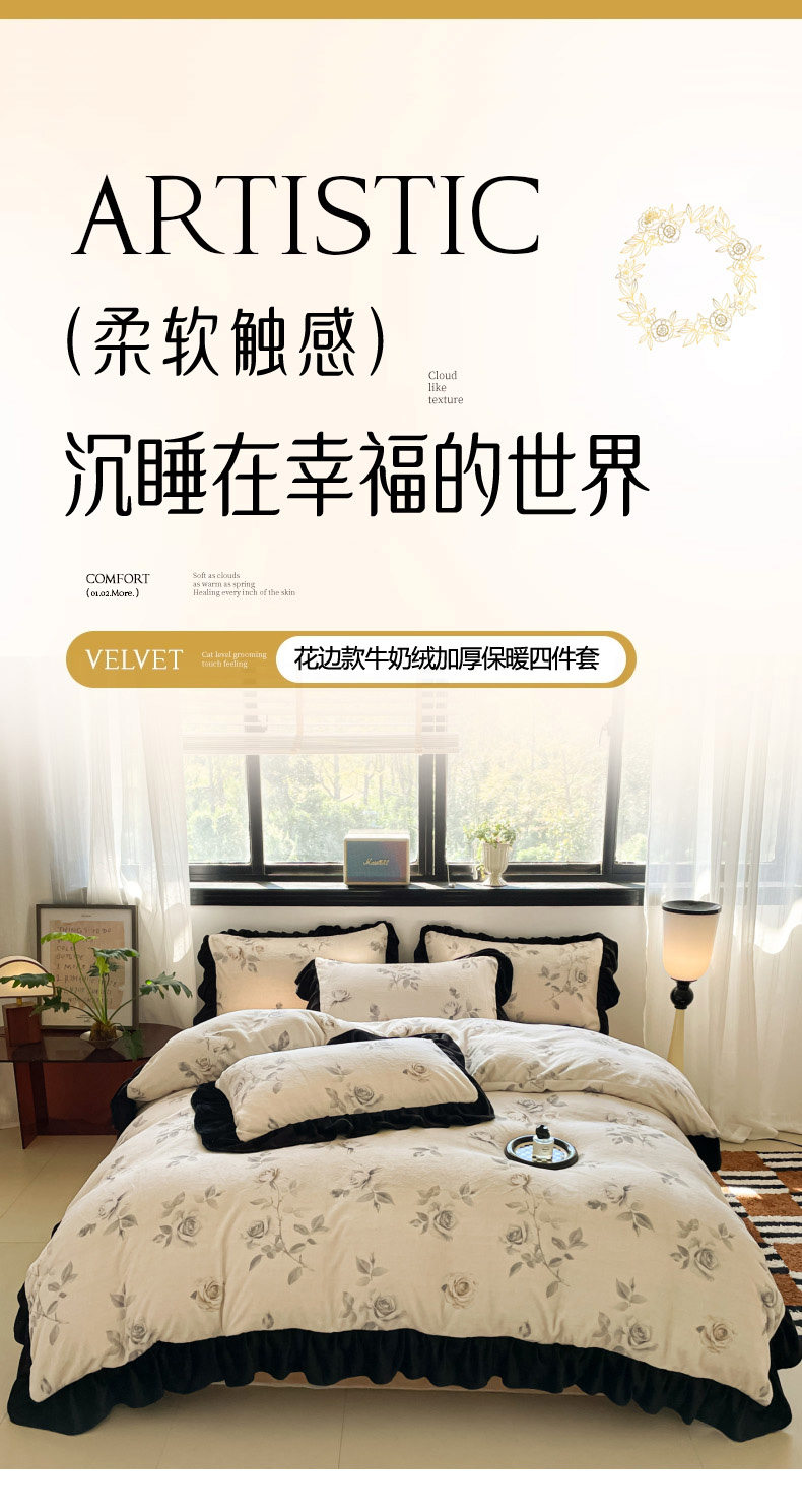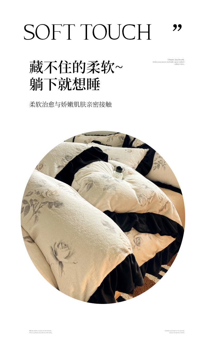 当前位置: 91家纺网 > 商品网购 > 床品套件 > 四件套 > 牛奶绒四件套 > 慕澄家纺 2025新款赫本风牛奶绒花边款四件套 花边款-灿烂花语