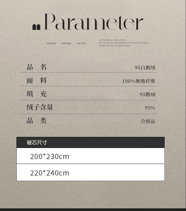 220-240 填充1600克95白鹅绒 厚冬被 | ¥2095.00 |