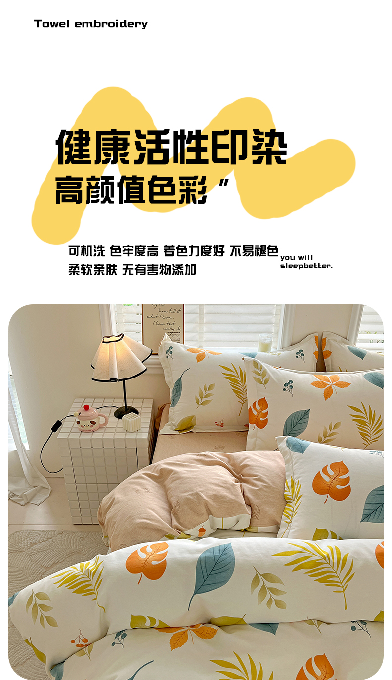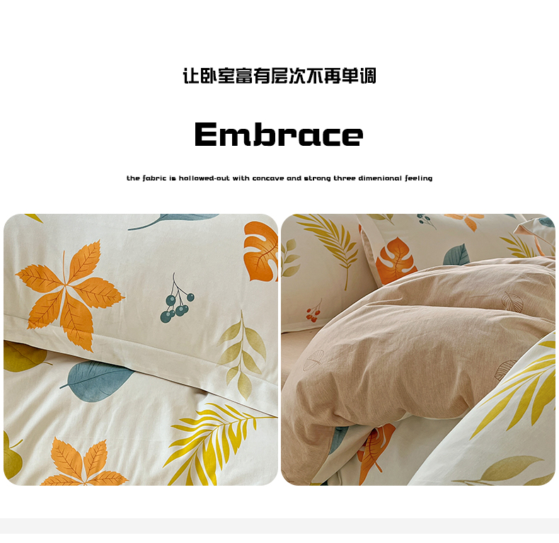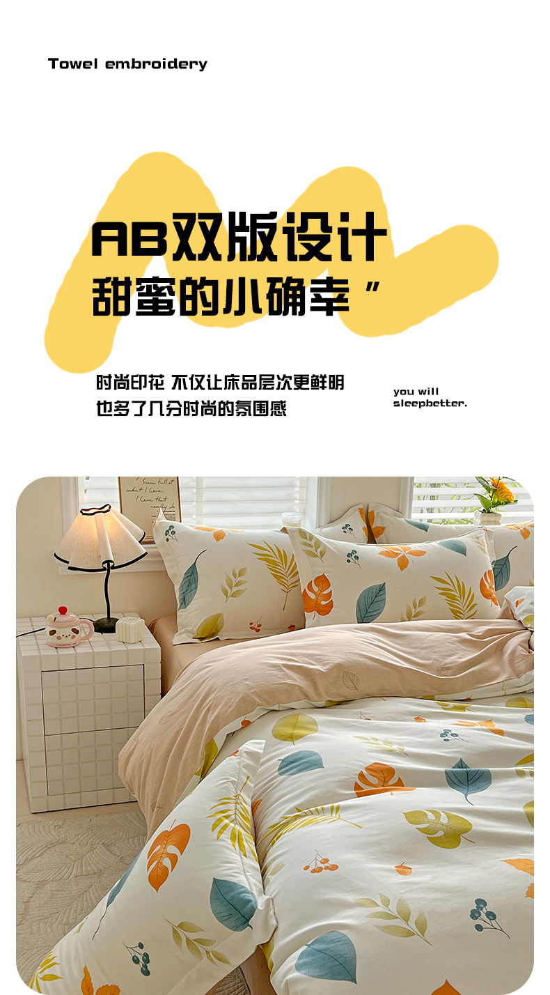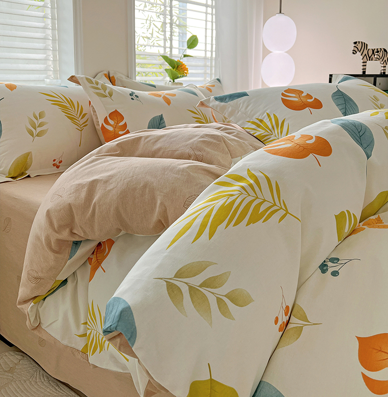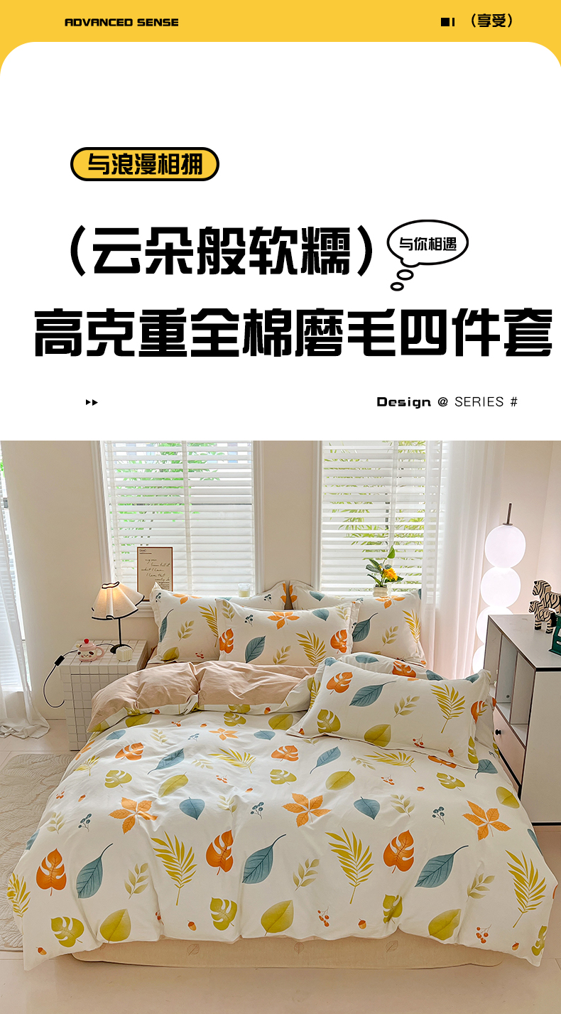 当前位置: 91家纺网 > 商品网购 > 床品套件 > 四件套 > 全棉普通四件套 > 依庭 2025新款高克重全棉纯棉磨毛印花四件套 叶之恋