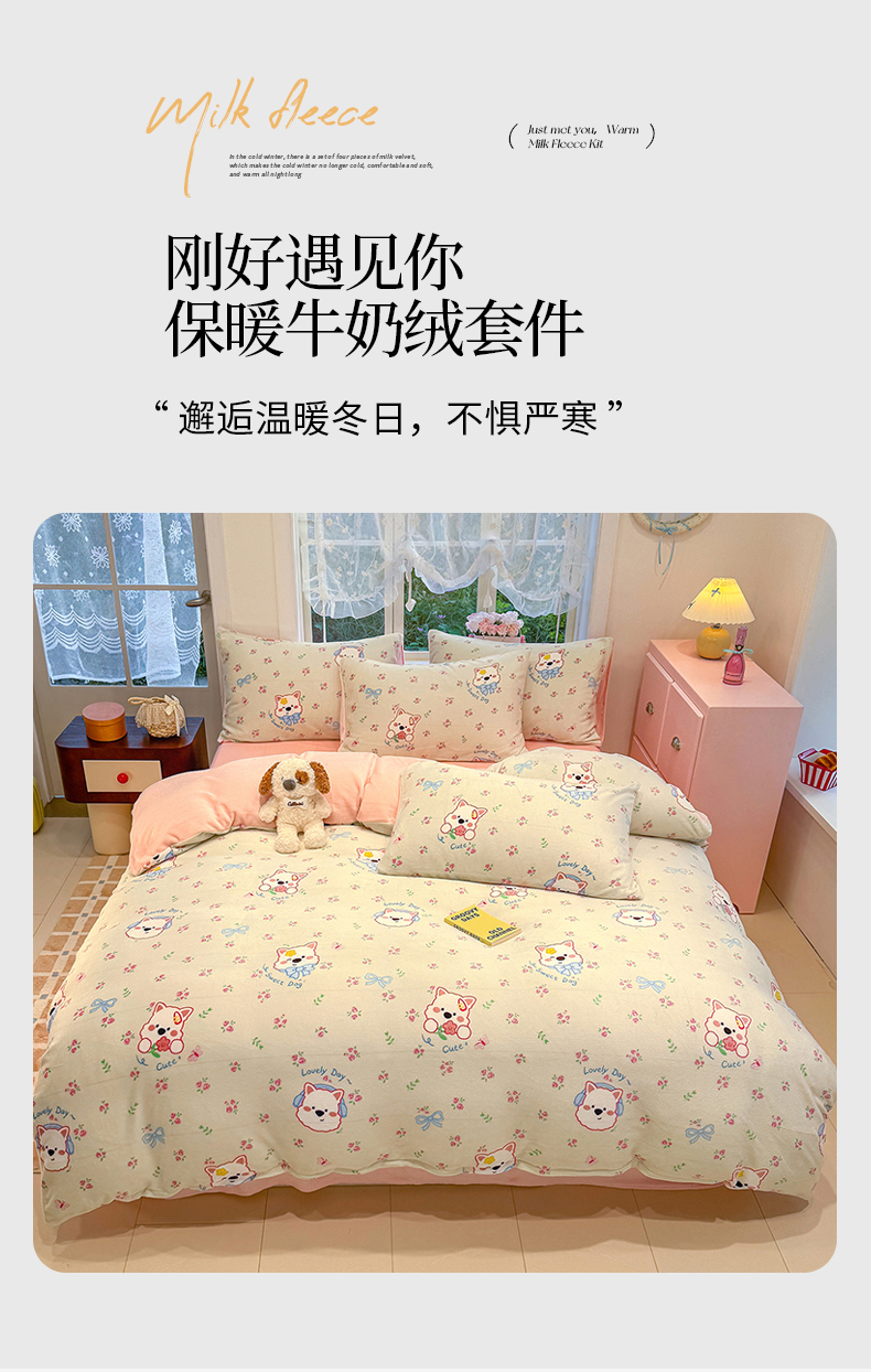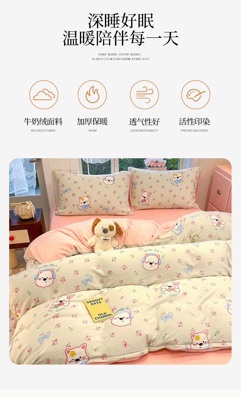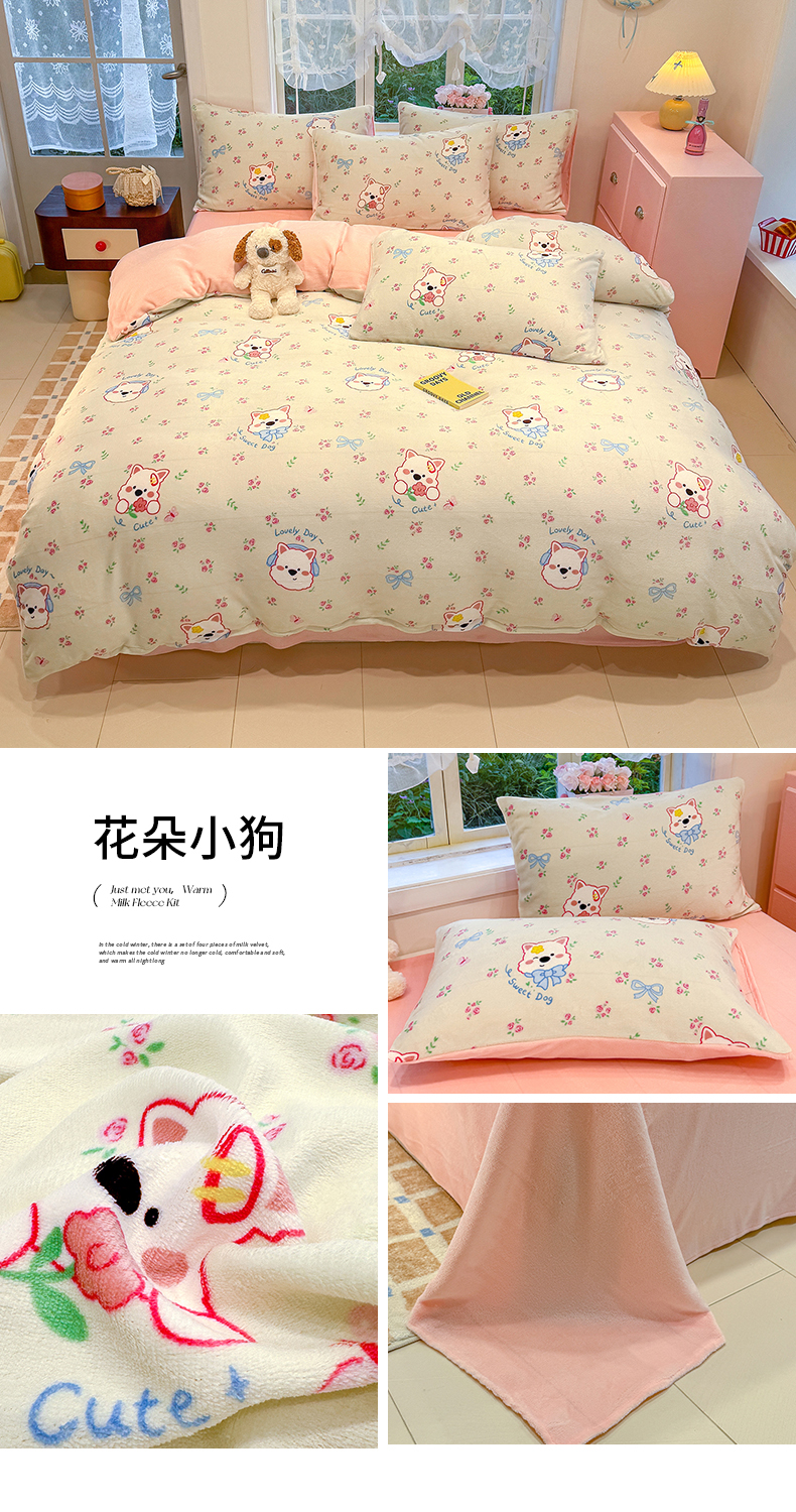 当前位置: 91家纺网 > 商品网购 > 床品套件 > 四件套 > 牛奶绒四件套 > 枋梢家纺 2025新款加厚牛奶绒保暖四件套 花朵小狗