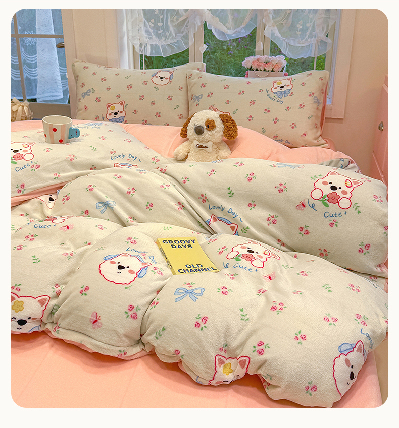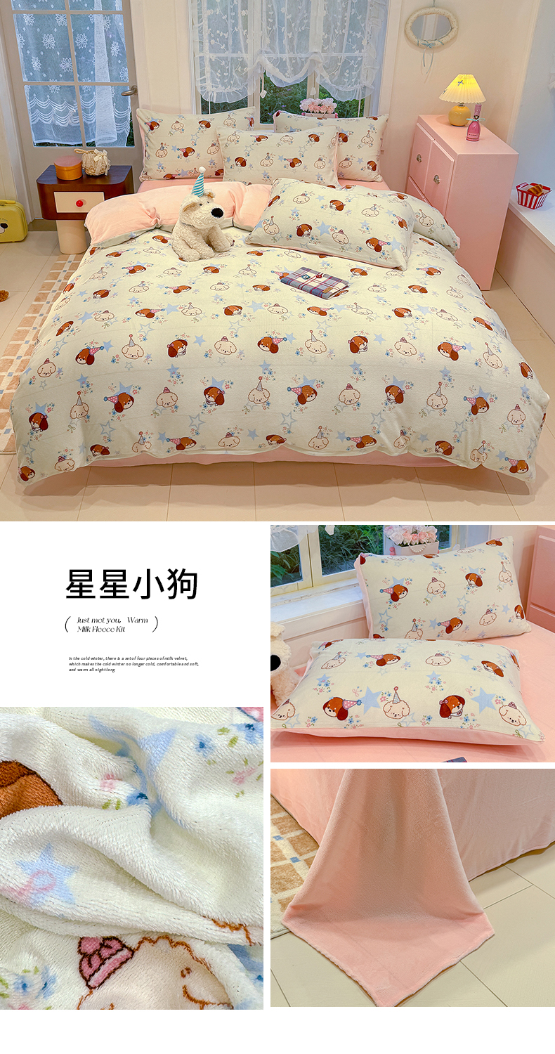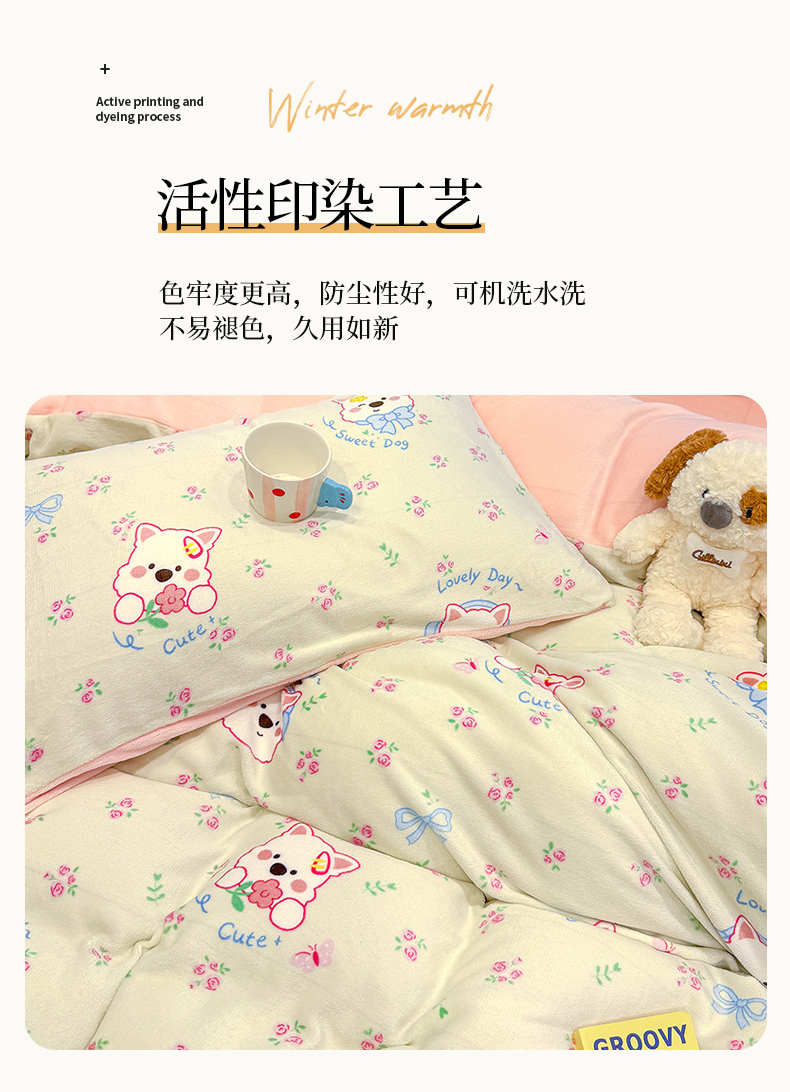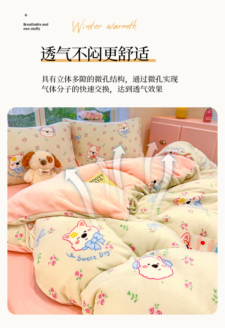 当前位置: 91家纺网 > 商品网购 > 床品套件 > 四件套 > 牛奶绒四件套 > 枋梢家纺 2025新款加厚牛奶绒保暖四件套 花朵小狗