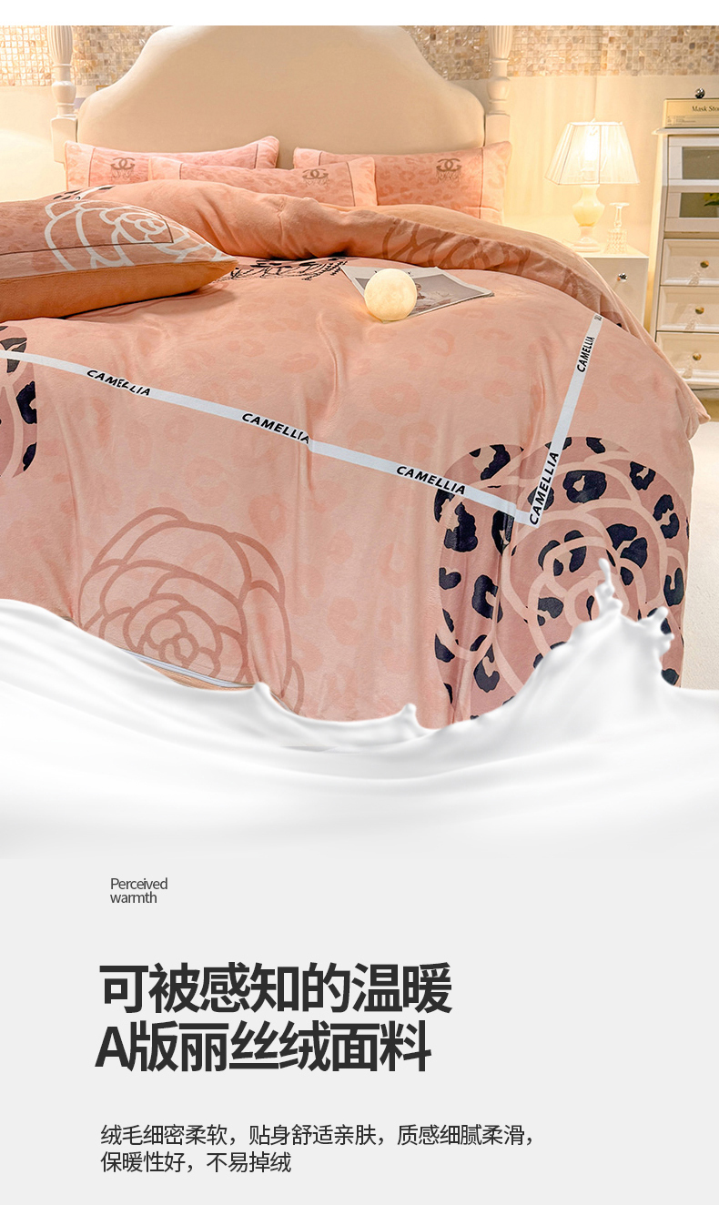 商品名称:(总) 2025 专版花型高克重A类全消光数码印花牛奶绒四件套-漫步温莎