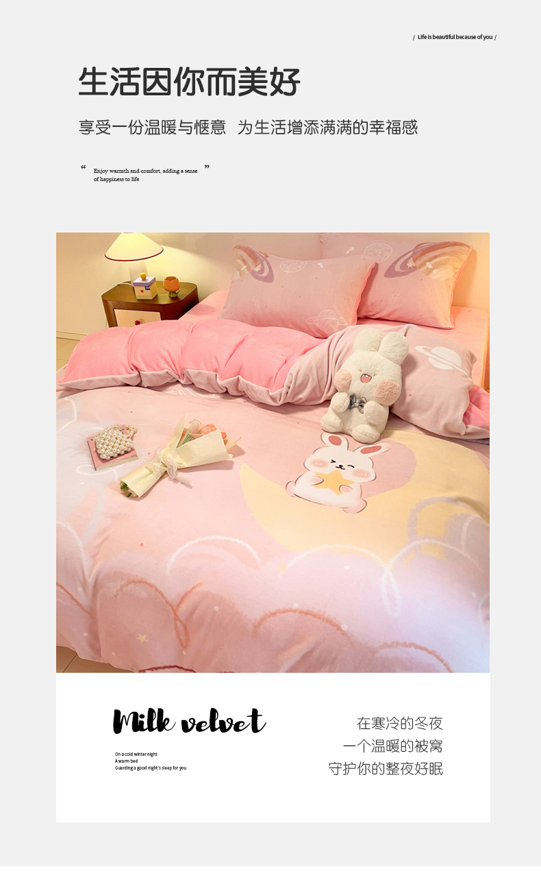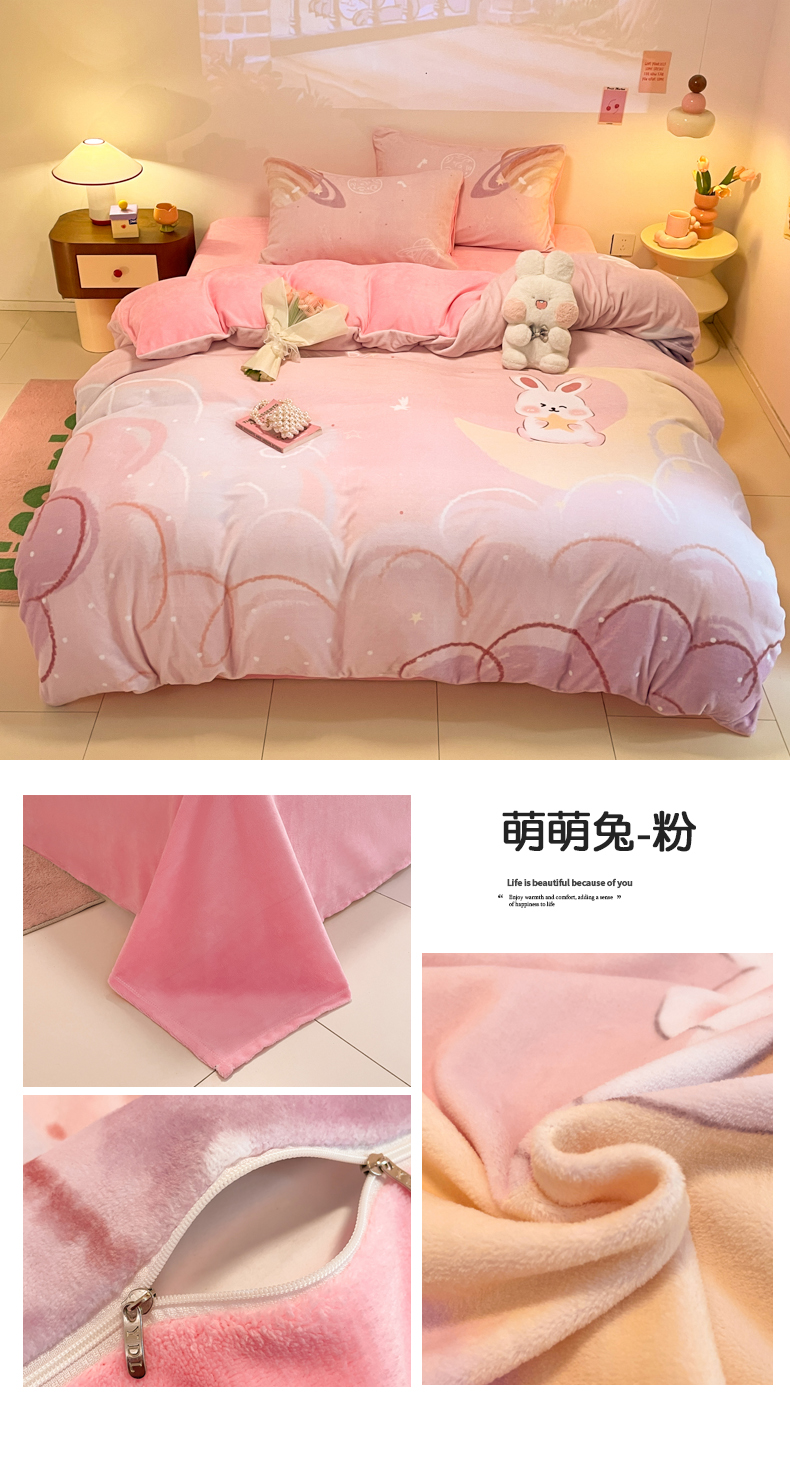 当前位置: 91家纺网 > 商品网购 > 床品套件 > 四件套 > 牛奶绒四件套 > (总)2025年新款 专版花型 高克重全消光A类儿童牛奶绒四件套-萌萌兔