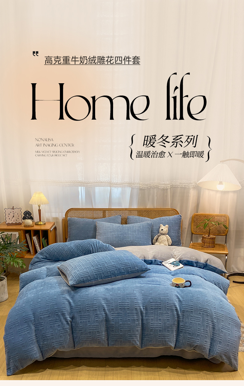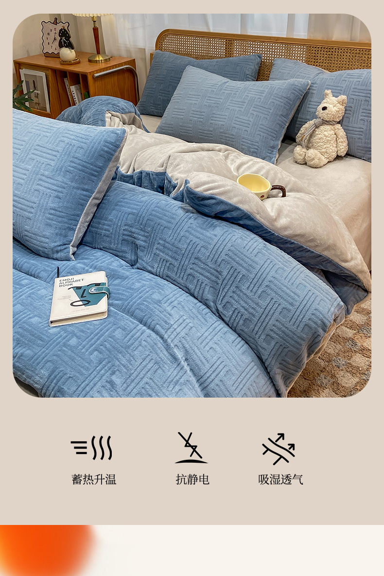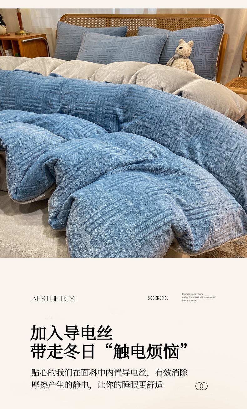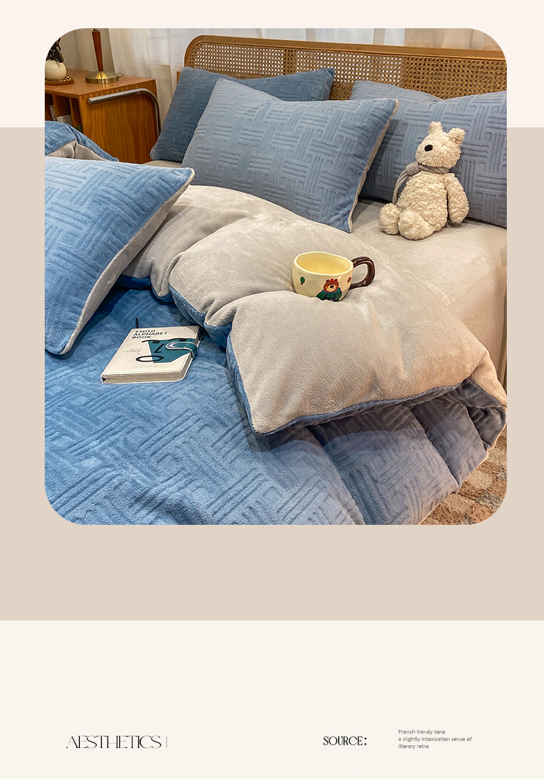当前位置: 91家纺网 > 商品网购 > 床品套件 > 四件套 > 牛奶绒四件套 > 灰鲸 2025新款高克重牛奶绒雕花简约纯色四件套 糖果格-宾利蓝+纳多灰