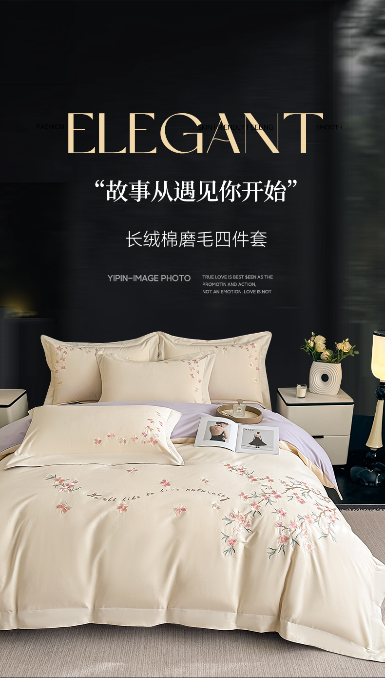 (总)桃园 新款纯棉全棉长绒棉磨毛不掉毛四件套高端礼盒-蝶町系列(包含买家秀),白粉,飘蓝,香芋紫,轻奢粉