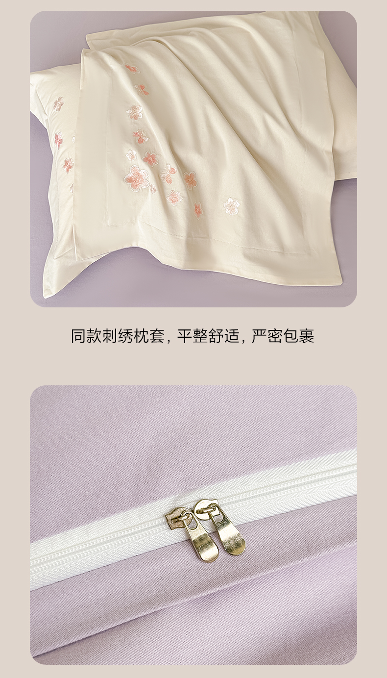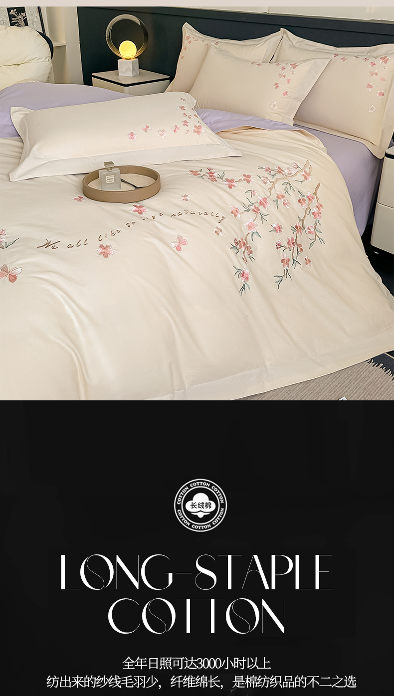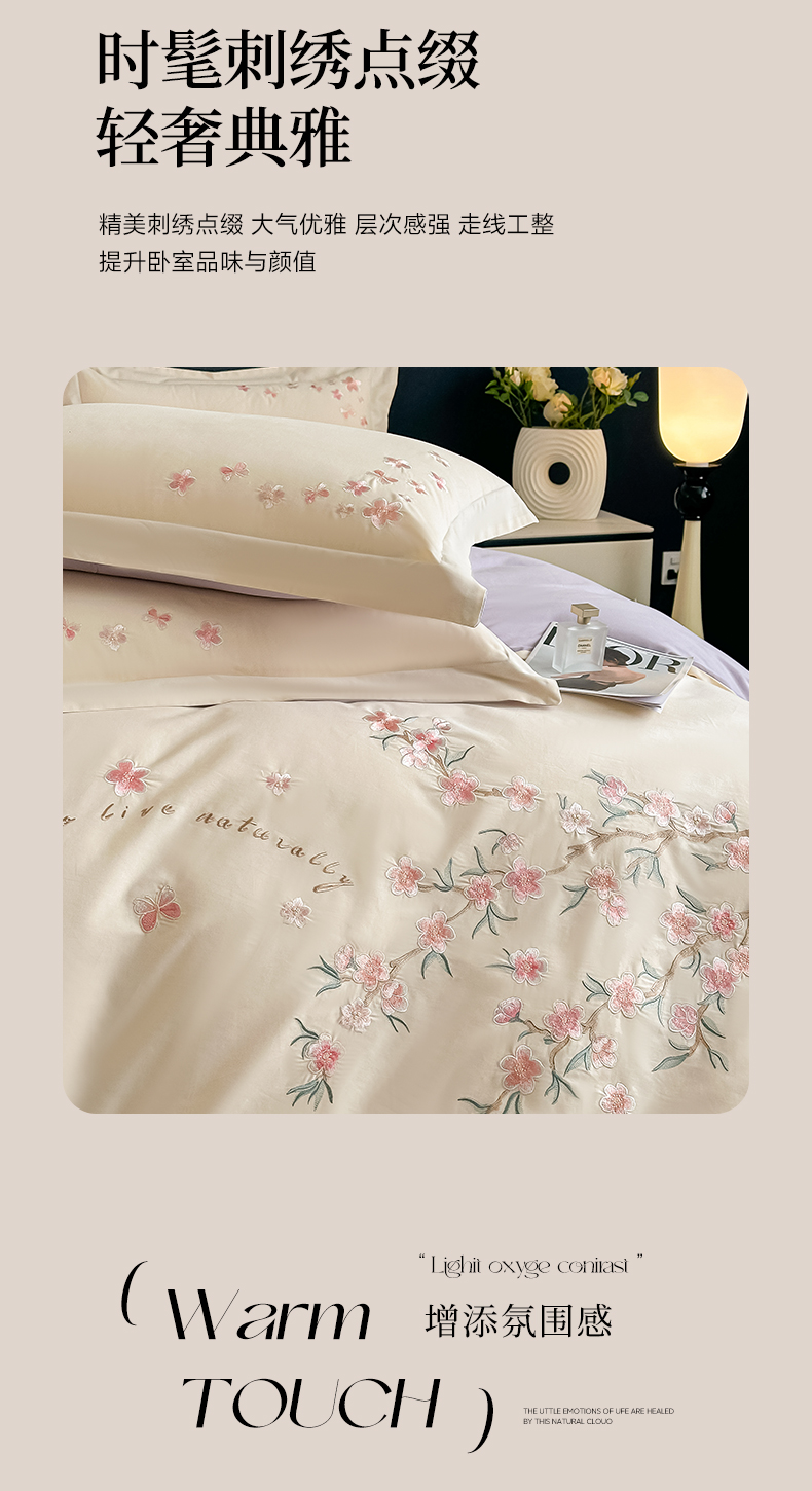 (总)桃园 新款纯棉全棉长绒棉刺绣绣花高端礼盒初暖系列四件套,白紫色,白粉色,轻奢粉,飘蓝色