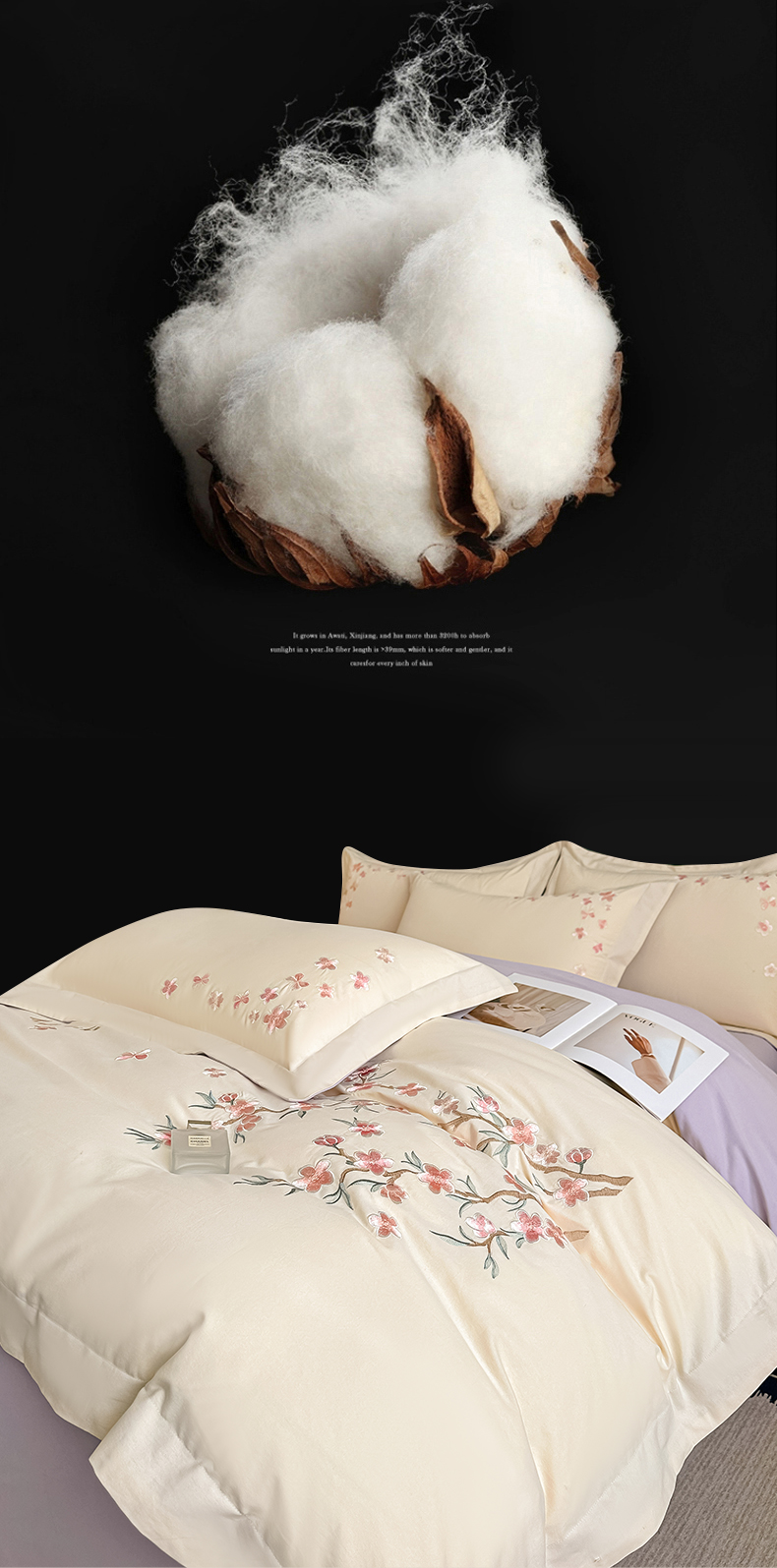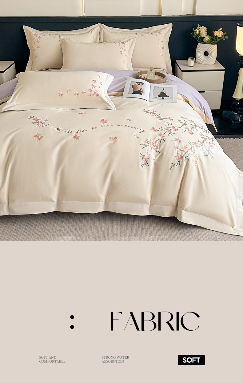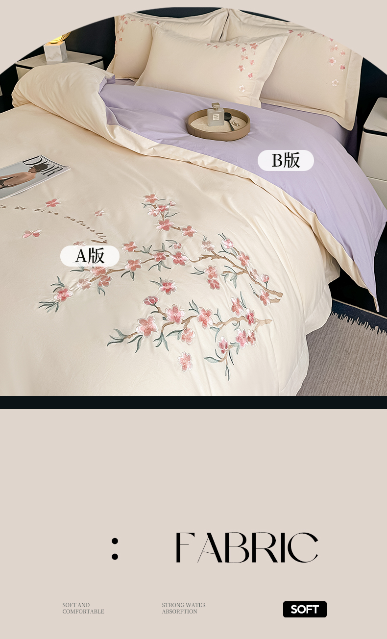 (总)桃园 新款纯棉全棉长绒棉刺绣绣花高端礼盒初暖系列四件套,白紫色,白粉色,轻奢粉,飘蓝色